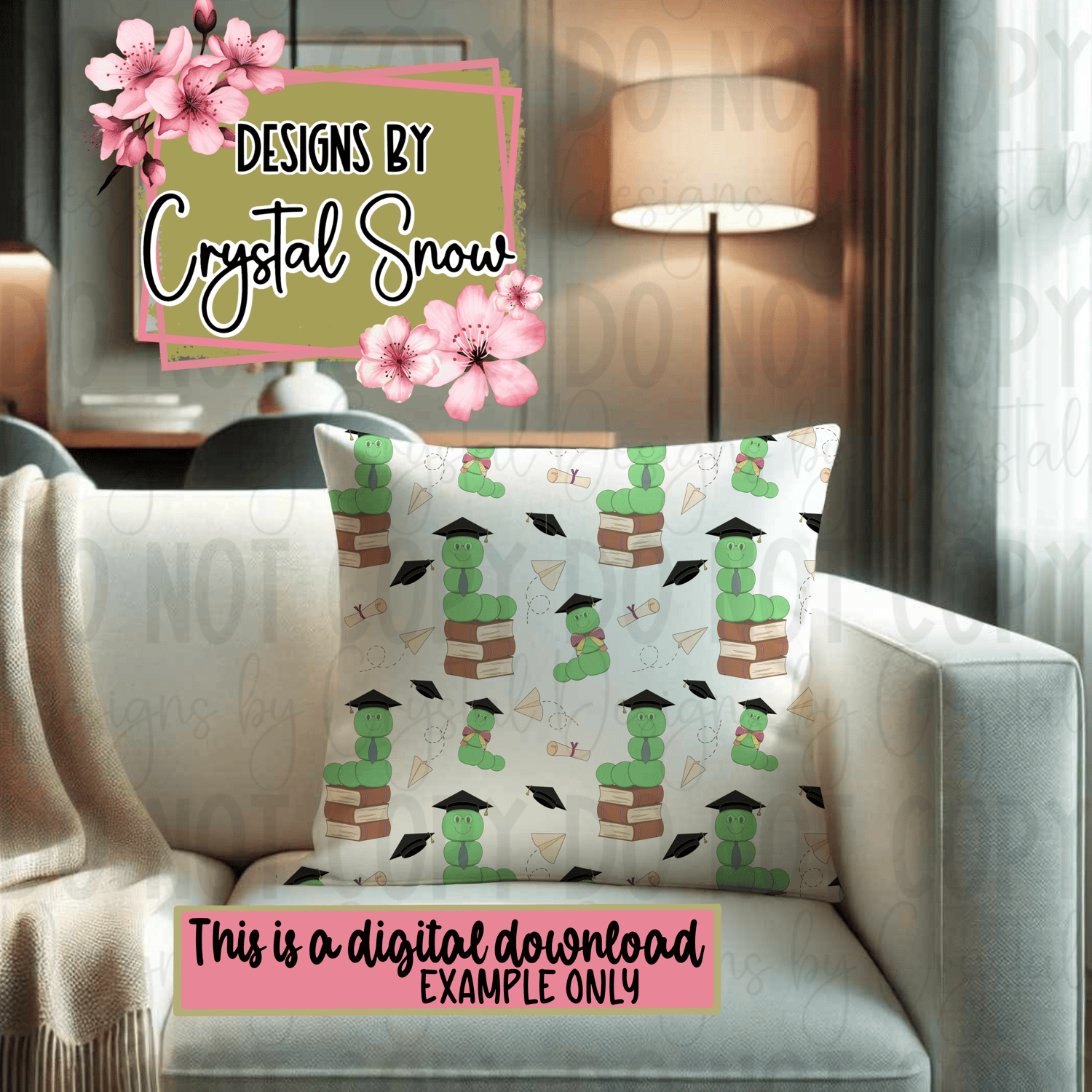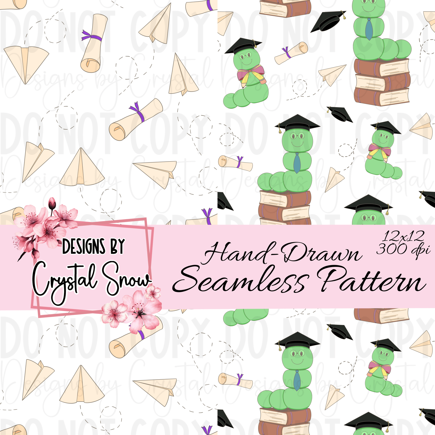 Celebrate graduation season with this adorable bundle of seamless digital patterns featuring book-loving worms, diplomas, and paper airplanes! 🎓