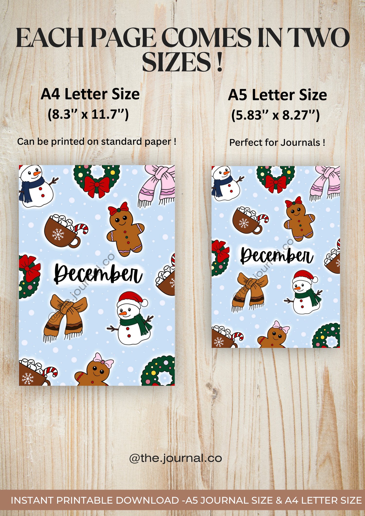 Pre-colored December Bullet Journal Bundle (Cozy Winter ) - A4 Letter Size & A5 Journal Size