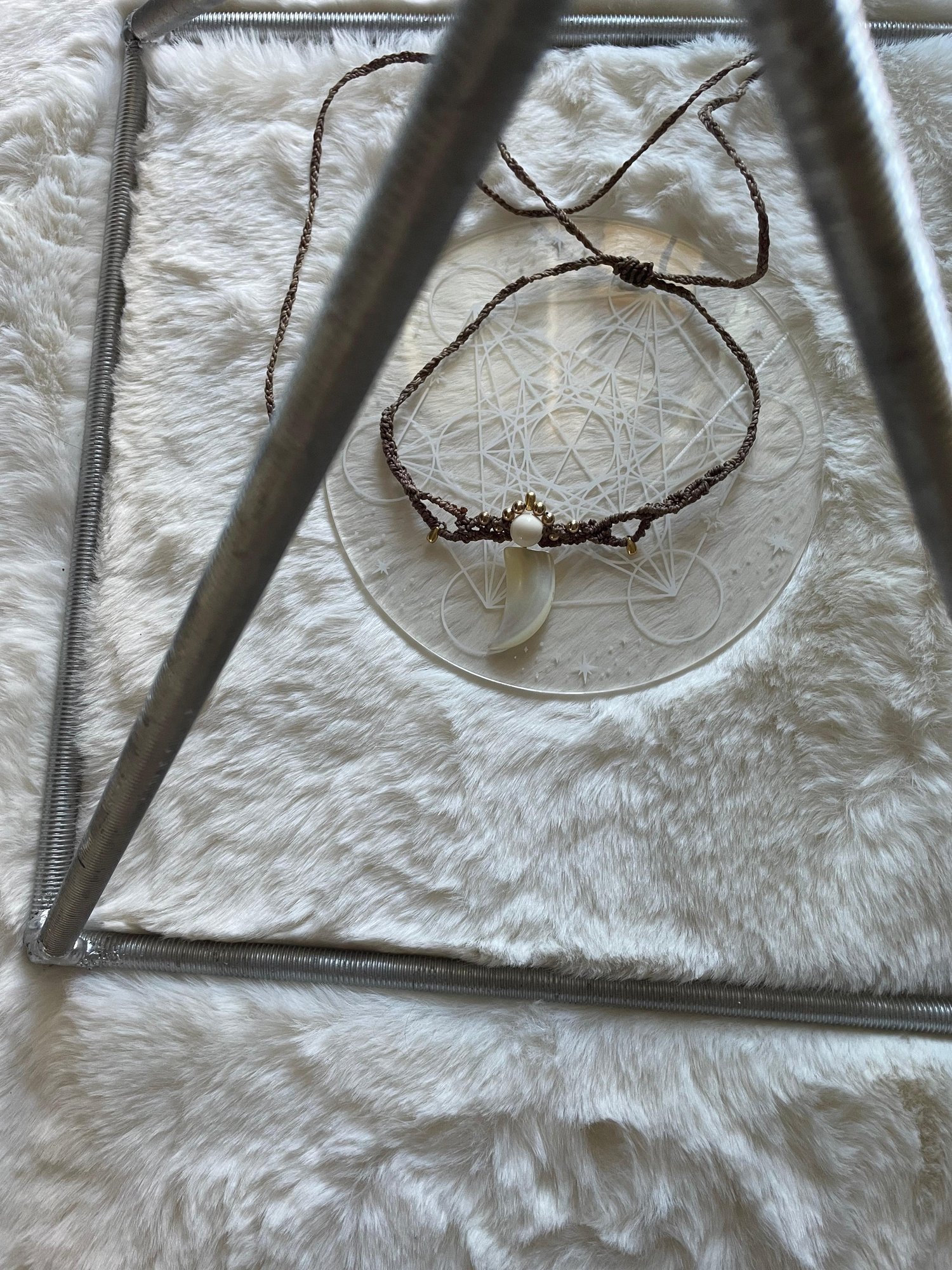 Ogni Amuleto è sottoposto a 3 giorni in pentasfera, 6 ore nel sistema di ricarica piramidale e a 9 minuti di infusione Reiki.