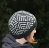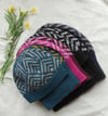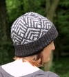 The Roinn* hat features a stranded colourwork motif, loosely inspired by Bronze Age artefacts found here in Ireland. The pattern is worked in the round, with guidance for working a standard or folded brim.
