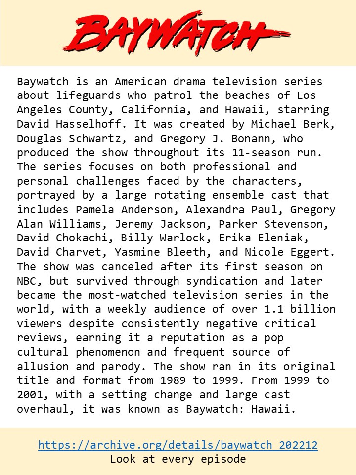 Baywatch (TV series look at every episode)
