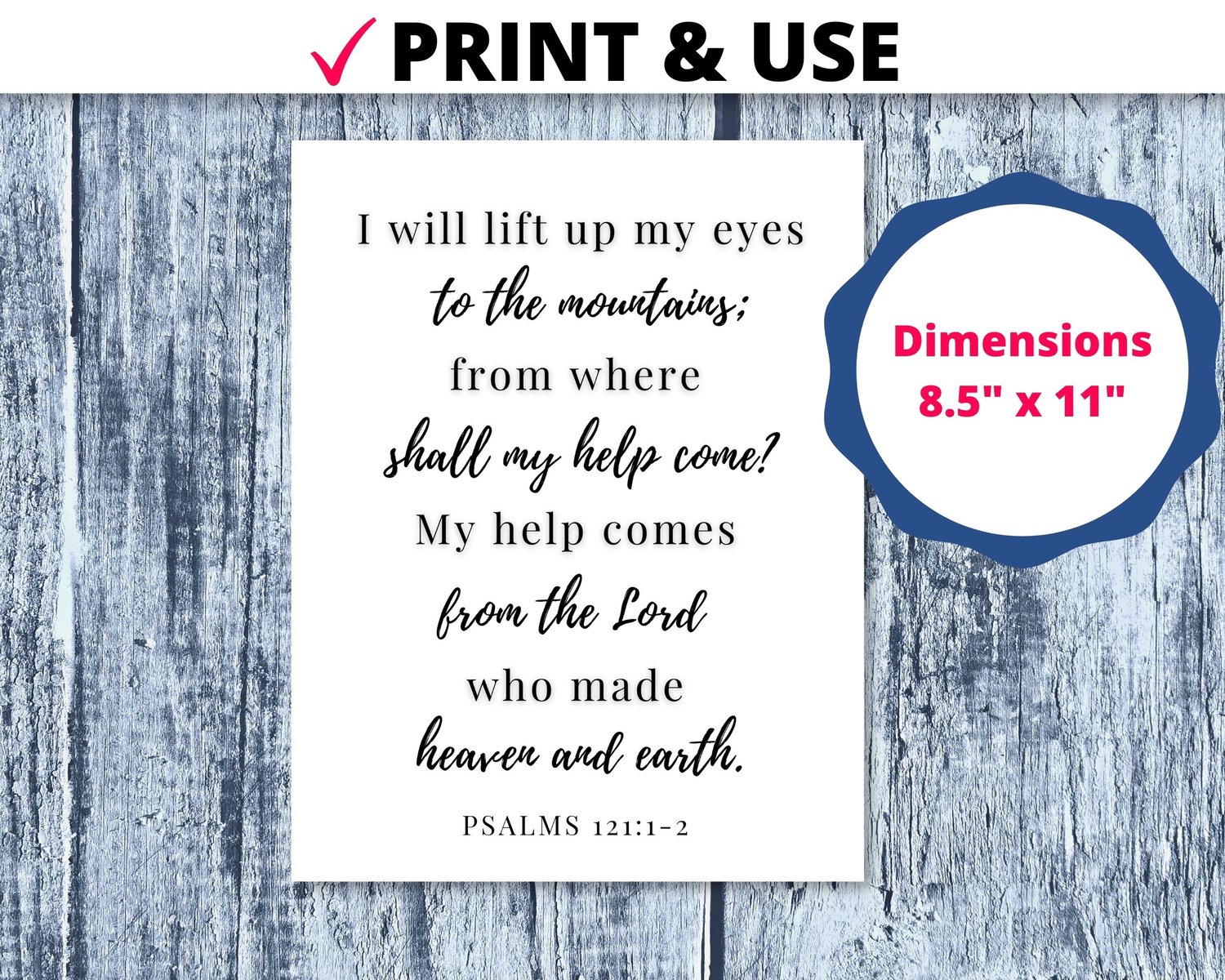 Psalms 121:1-2 I will lift up my eyes. Scripture Prints, Bible Verse Wall Art, Gift for Her, Bible Verse Print, Home Decor, Wall Art