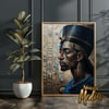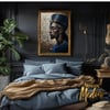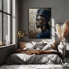 Downloadable digital art of an ancient Egyptian Pharaoh. This detailed portrait showcases the regal essence of a Kemetic/Nubian king, perfect for home or office decor. Add a touch of ancient history and culture to your space with this high-quality, printable wall art.