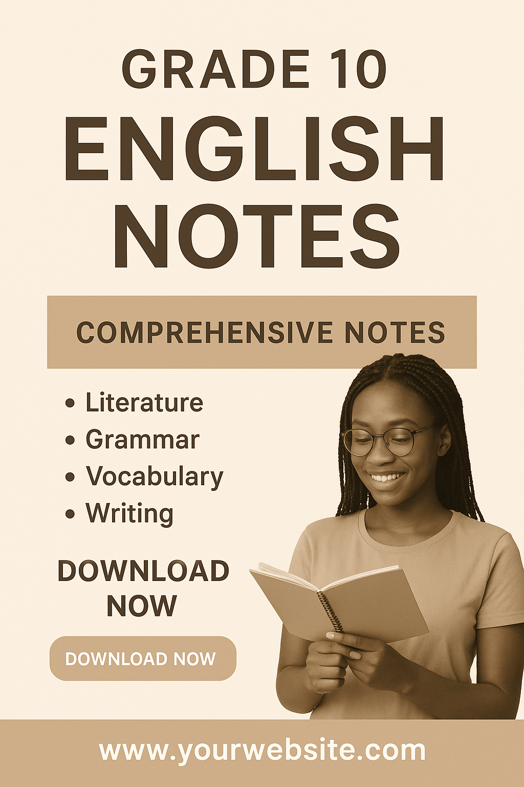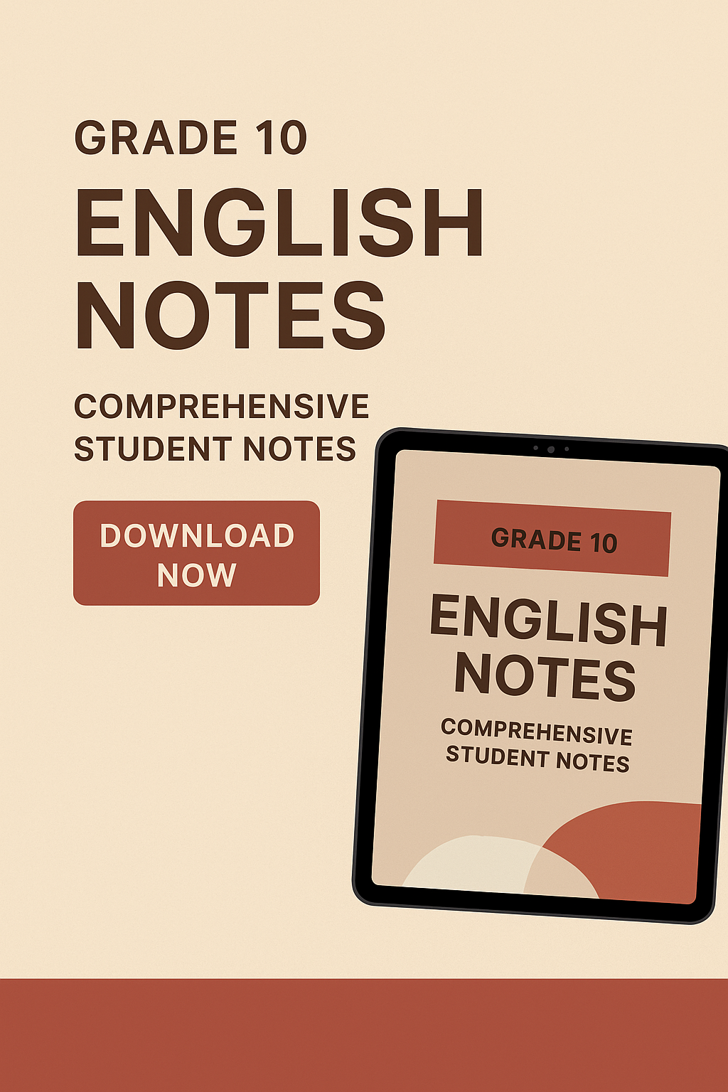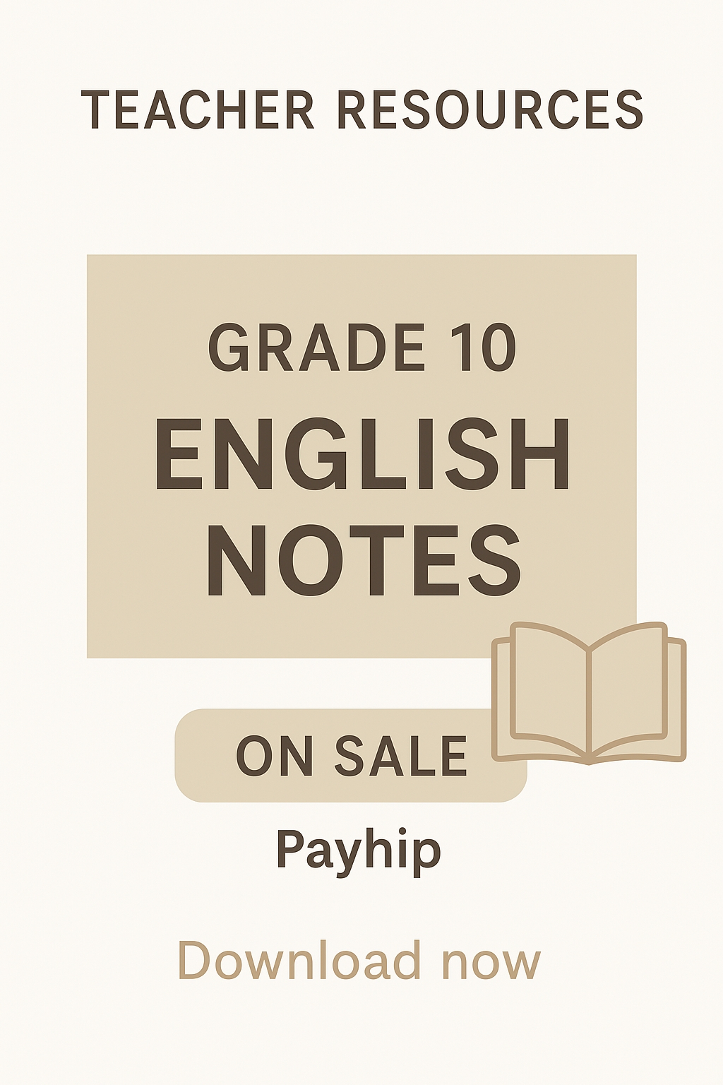 This digital PDF contains structured English Grade 10 lesson notes suitable for both classroom learning and self-study.