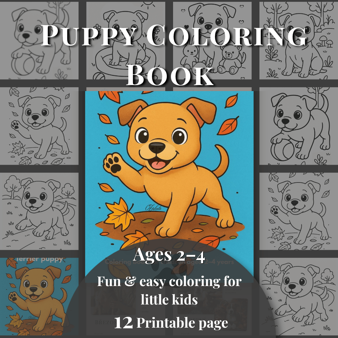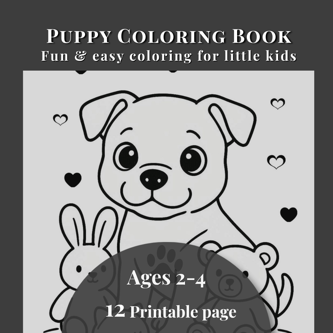 with simple shapes, thick lines, and adorable puppy illustrations that are easy and fun to color.