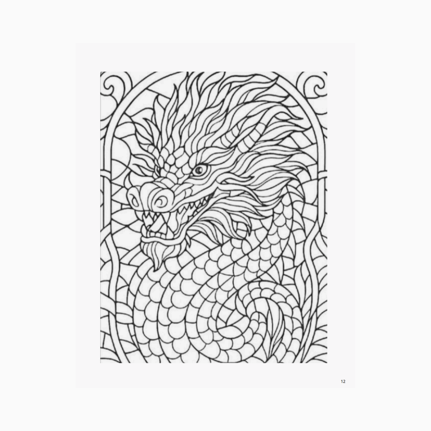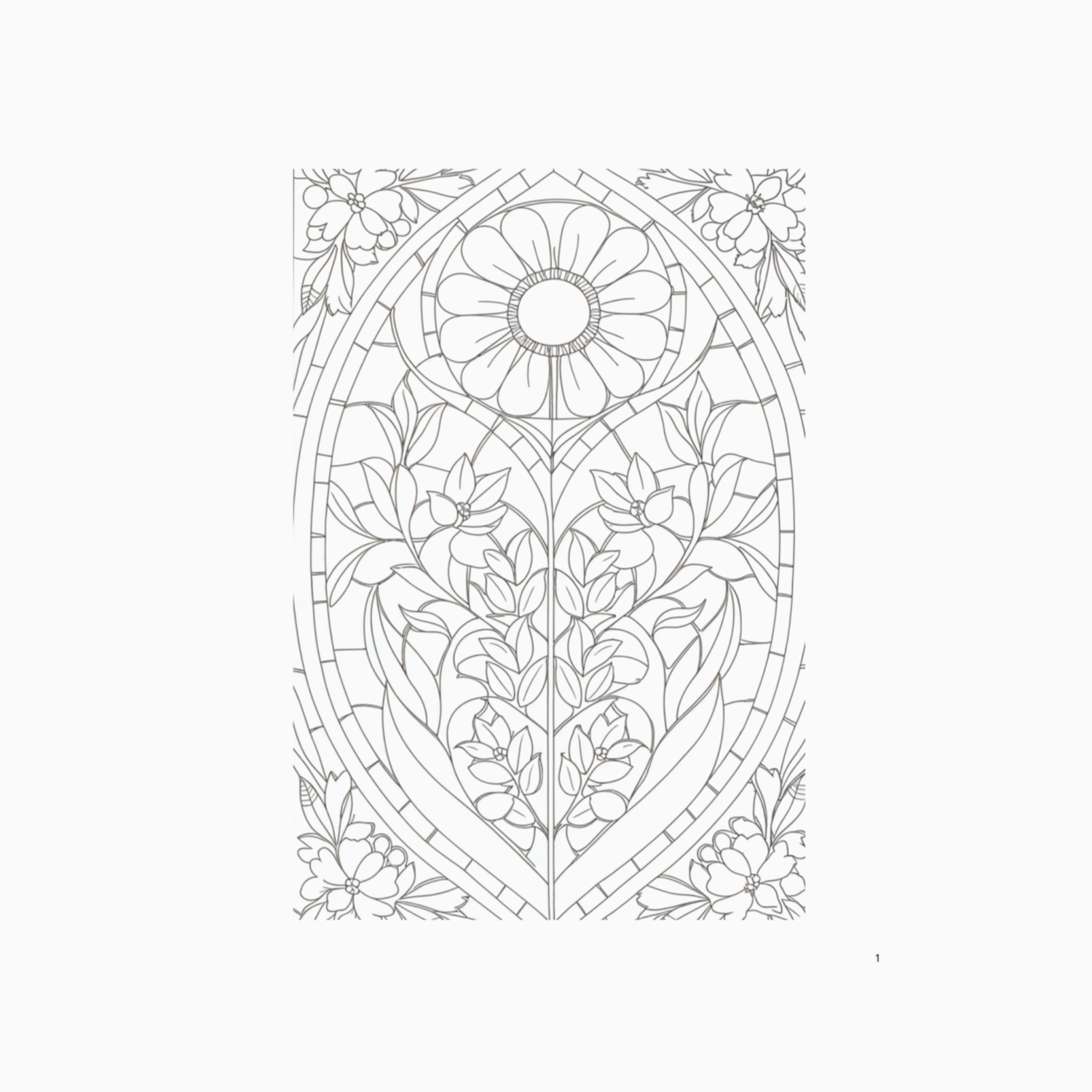 Розмальовка з 61 сторінки, присвячена вітражному мистецтву.