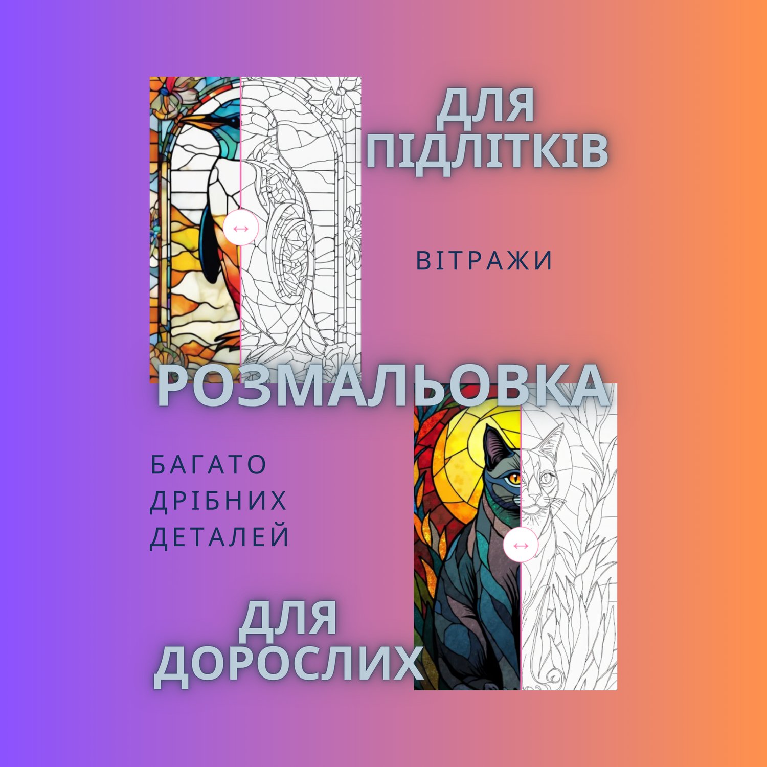 Розмальовка для дорослих. Вітражі (61 сторінка, PDF)