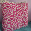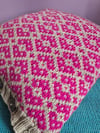 If you love knitting stranded colour work, you will love knitting this Love Hearts Cushion. The cushion is knitted in the round and finished off with a rib button band.