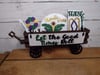 Mardi Gras set for the interchangable wagon comes with three pieces, a sign that says Love with a king cake, a pallet sign with mask, and a Beads and Bling sign, also a sign with hooksthst says Let the Good Times Roll for the front of wagon. They range in size 5-8" and are available painted or unpainted.