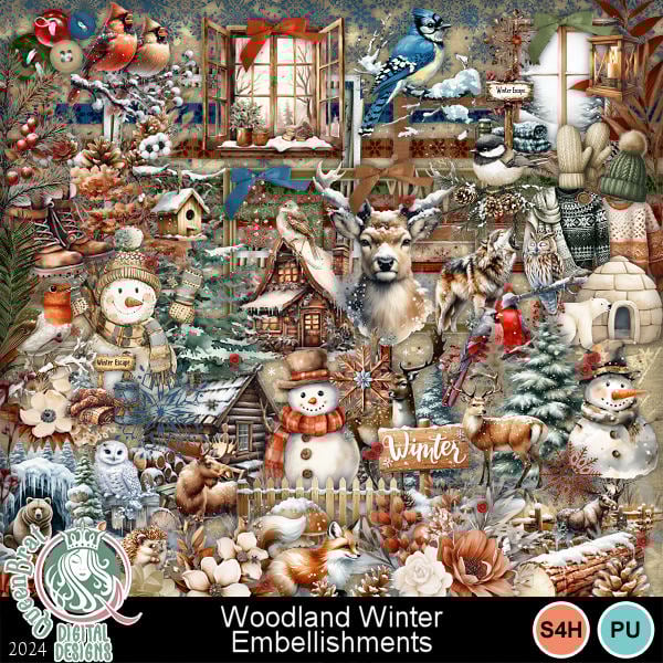 A rustic woodland winter kit filled with beautiful watercolor animals and clip art with a sprinkle of snow. It is a must have for your scraping collection.