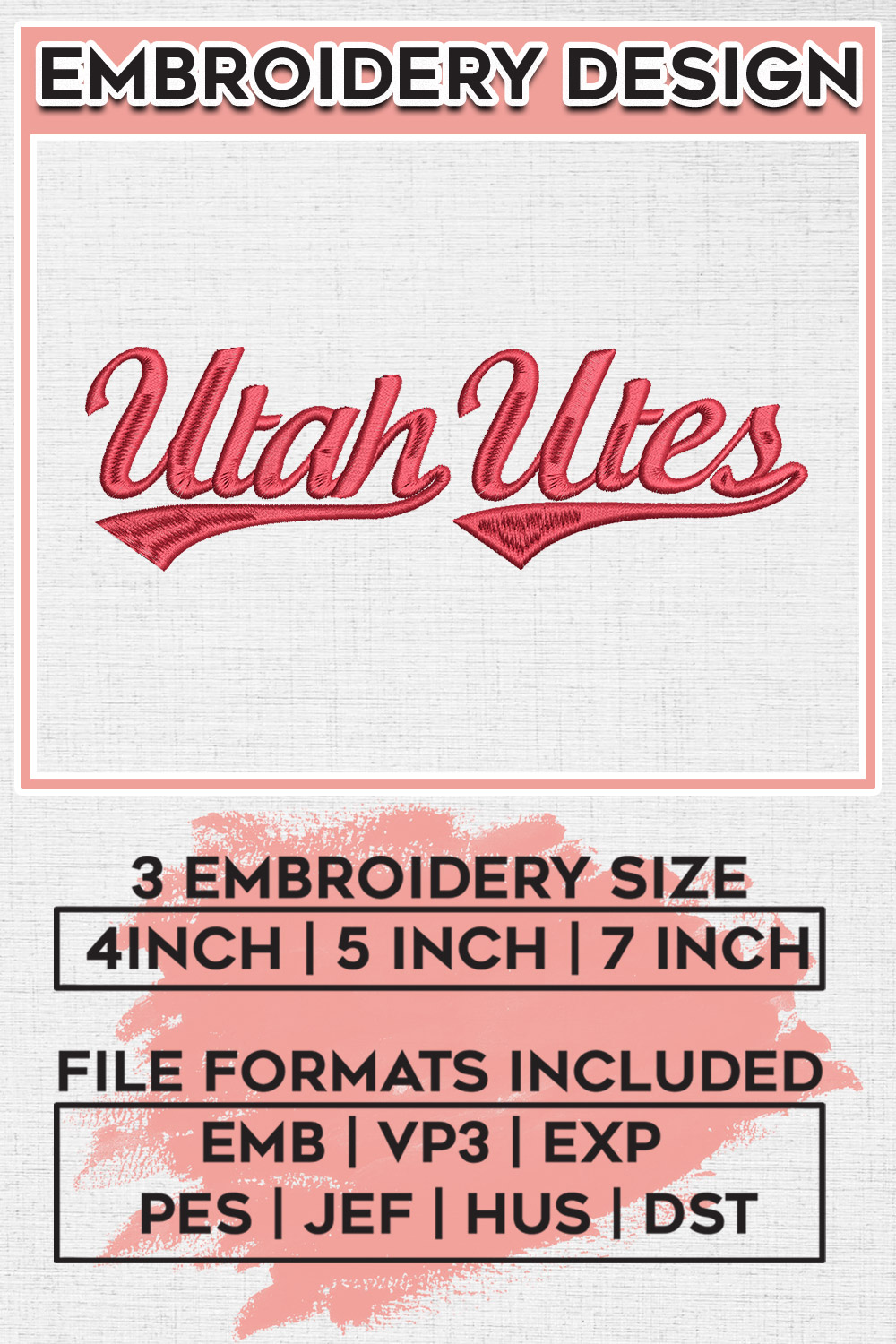 Utah Utes Football Team Writing Logo Embroidery Designs, NCAA Utah Utes Machine Embroidery Files, NCAA Logo embroidery designs, NCAA Utah Logo, Digital Download