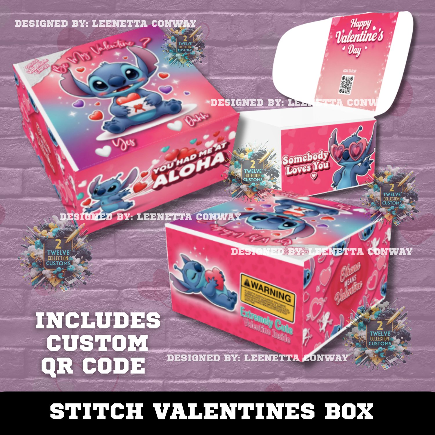 Stitch Valentines Box, Valentine Box Template, Canva Valentine Box, 8x8x4 Gift Box Template, Valentine QR Code Gift, Kids Valentine Box, Stitch Valentine Printable, Valentine Treat Box, Valentine Gift Packaging