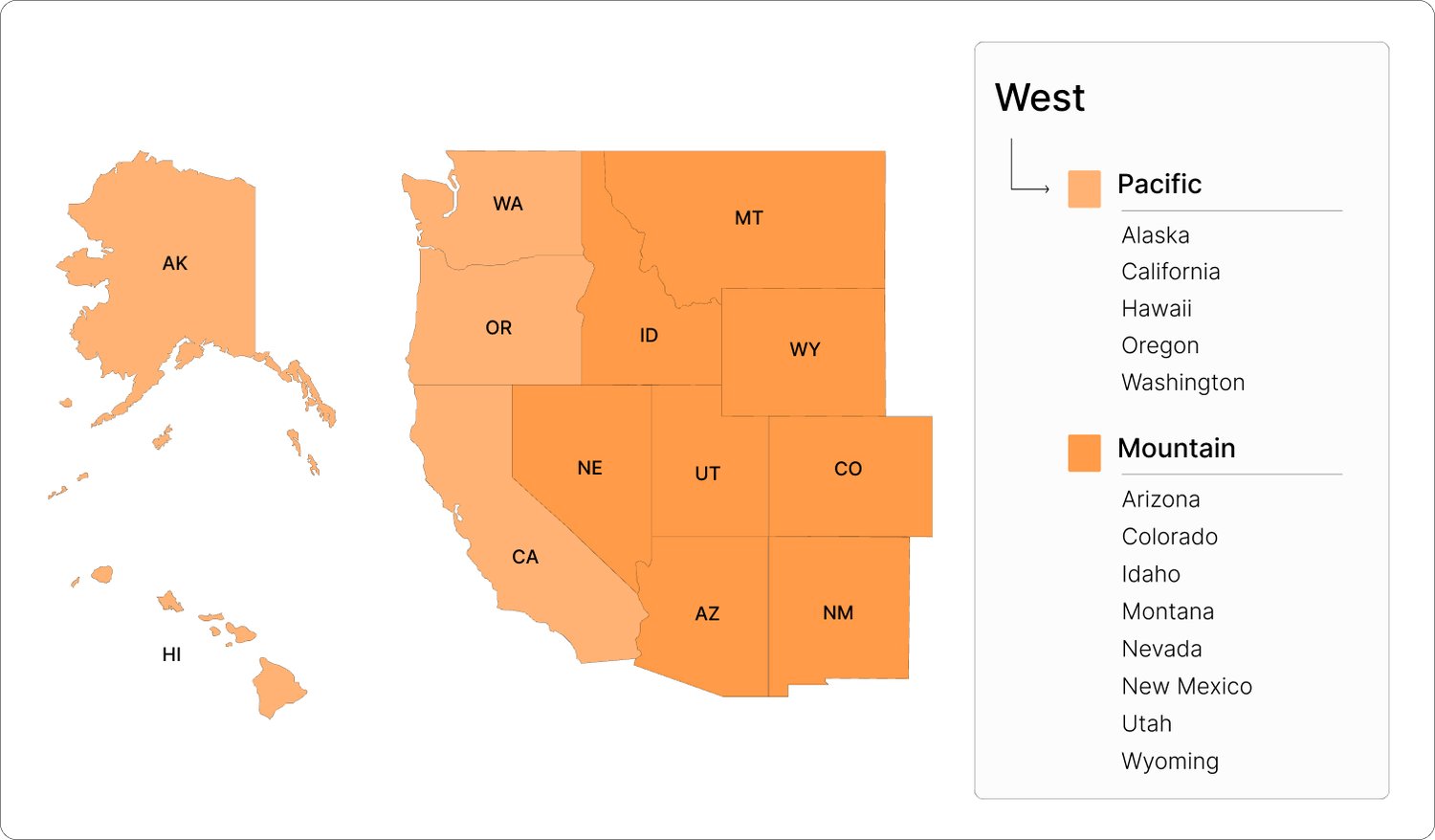 - West Region: Includes both the Mountain and Pacific divisions (including Alaska and Hawaii).