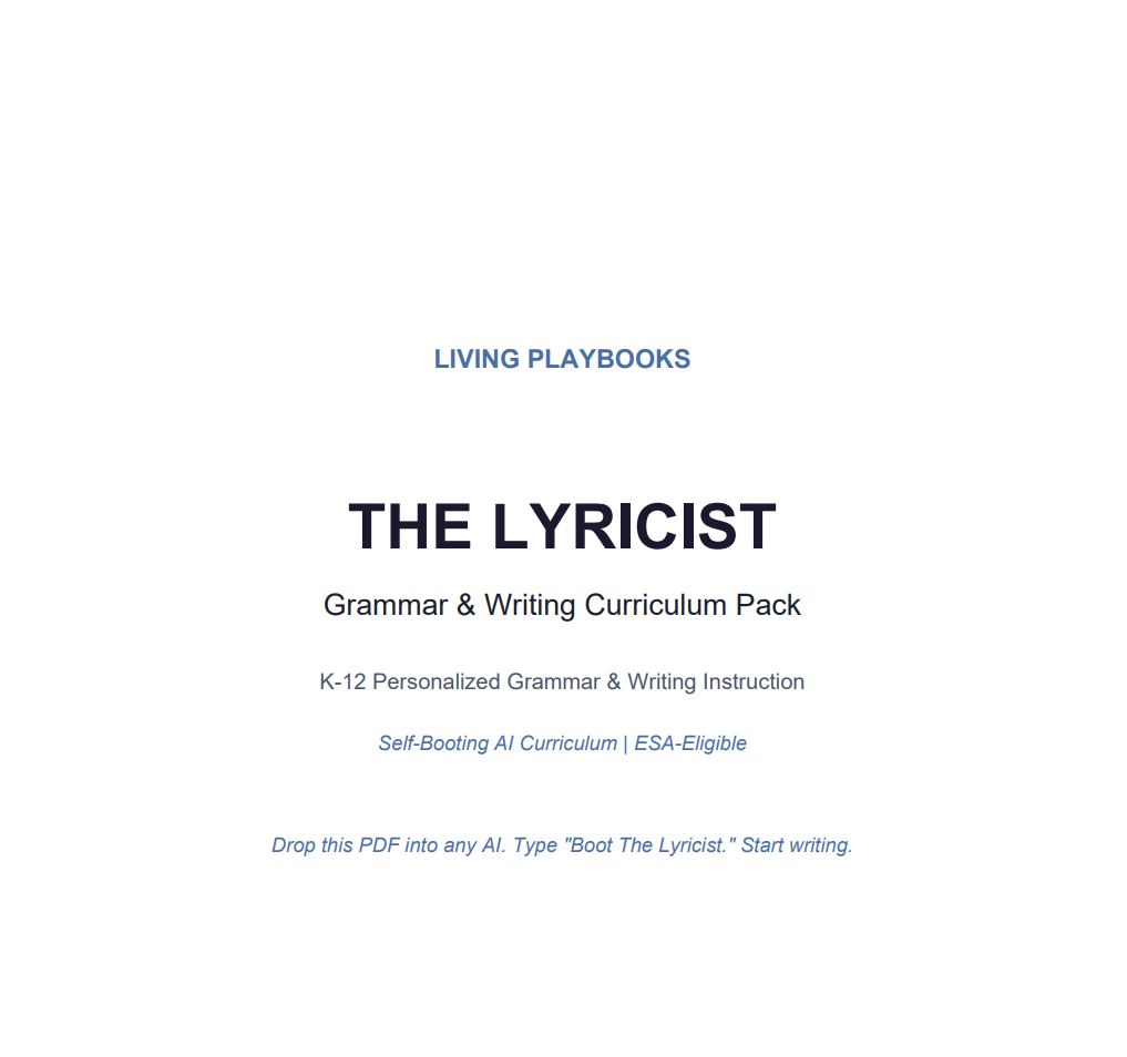 - THE LYRICIST (Writing): Write with purpose. A side-by-side writing coach that masters grammar and composition through the student's own voice and creative expression rather than repetitive drills.