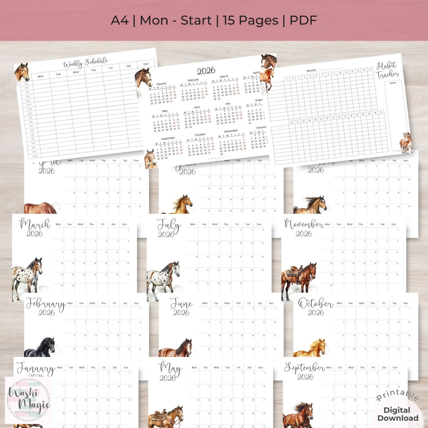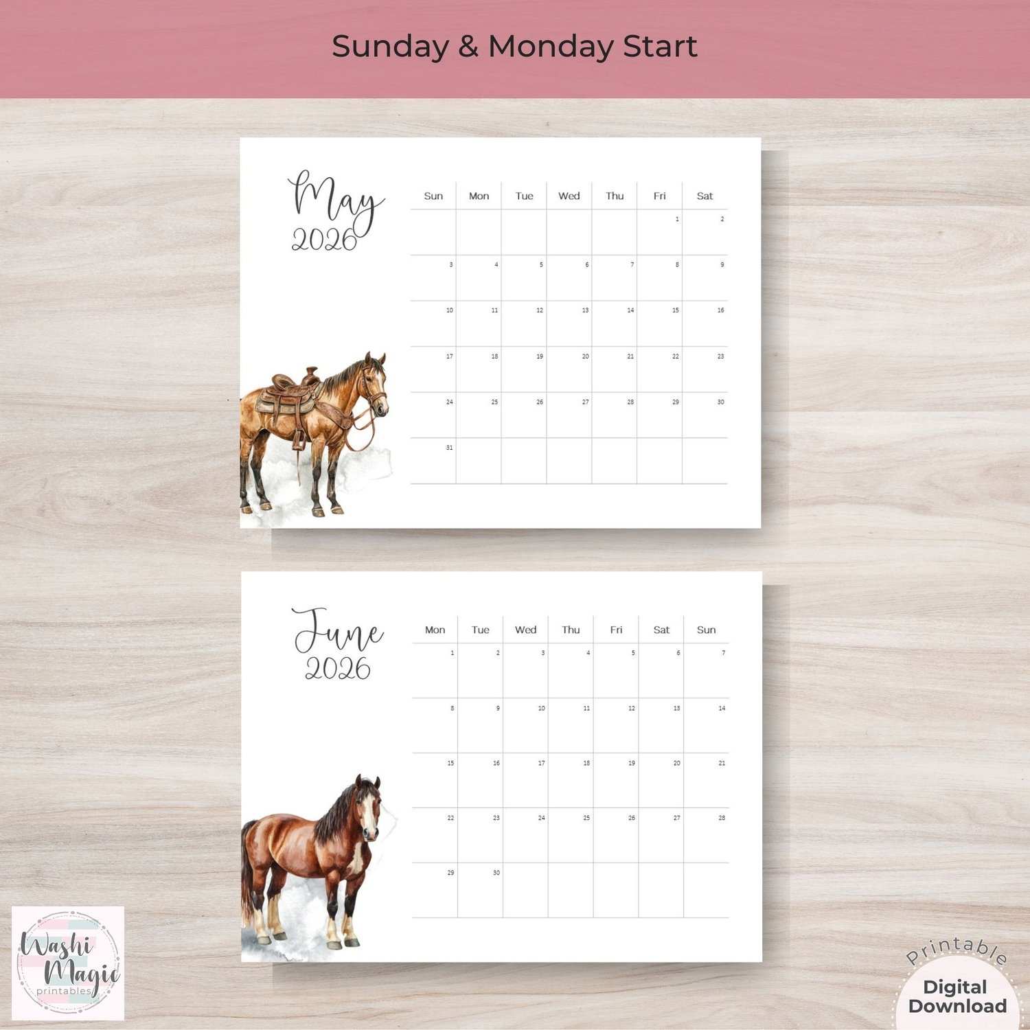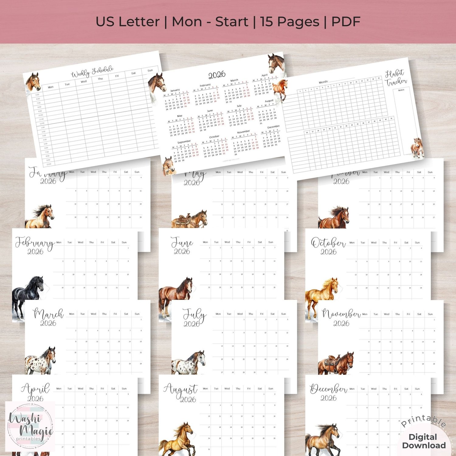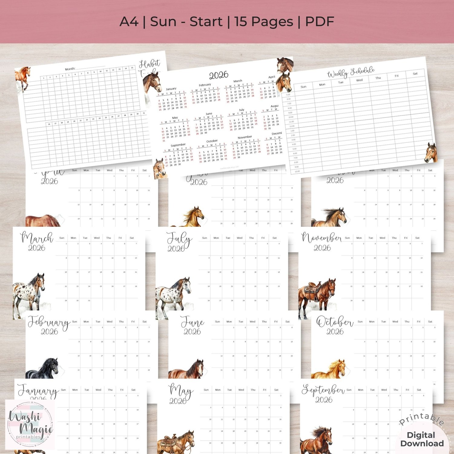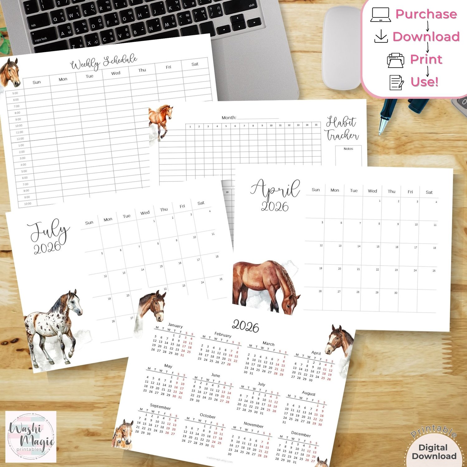Stay ahead of the game with our stunning 2026 landscape horse calendar! Start planning for the new year and stay organized with our habit tracker to cultivate good habits. This calendar also includes a weekly schedule for easy planning.