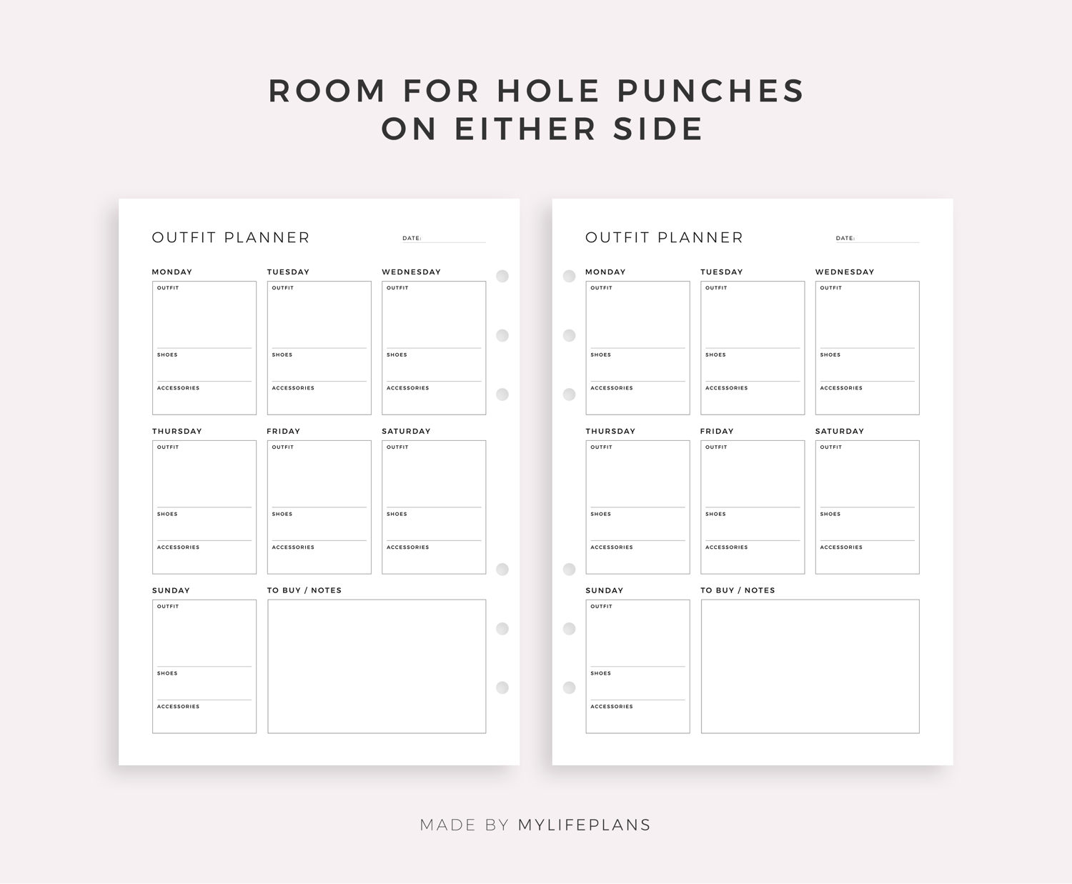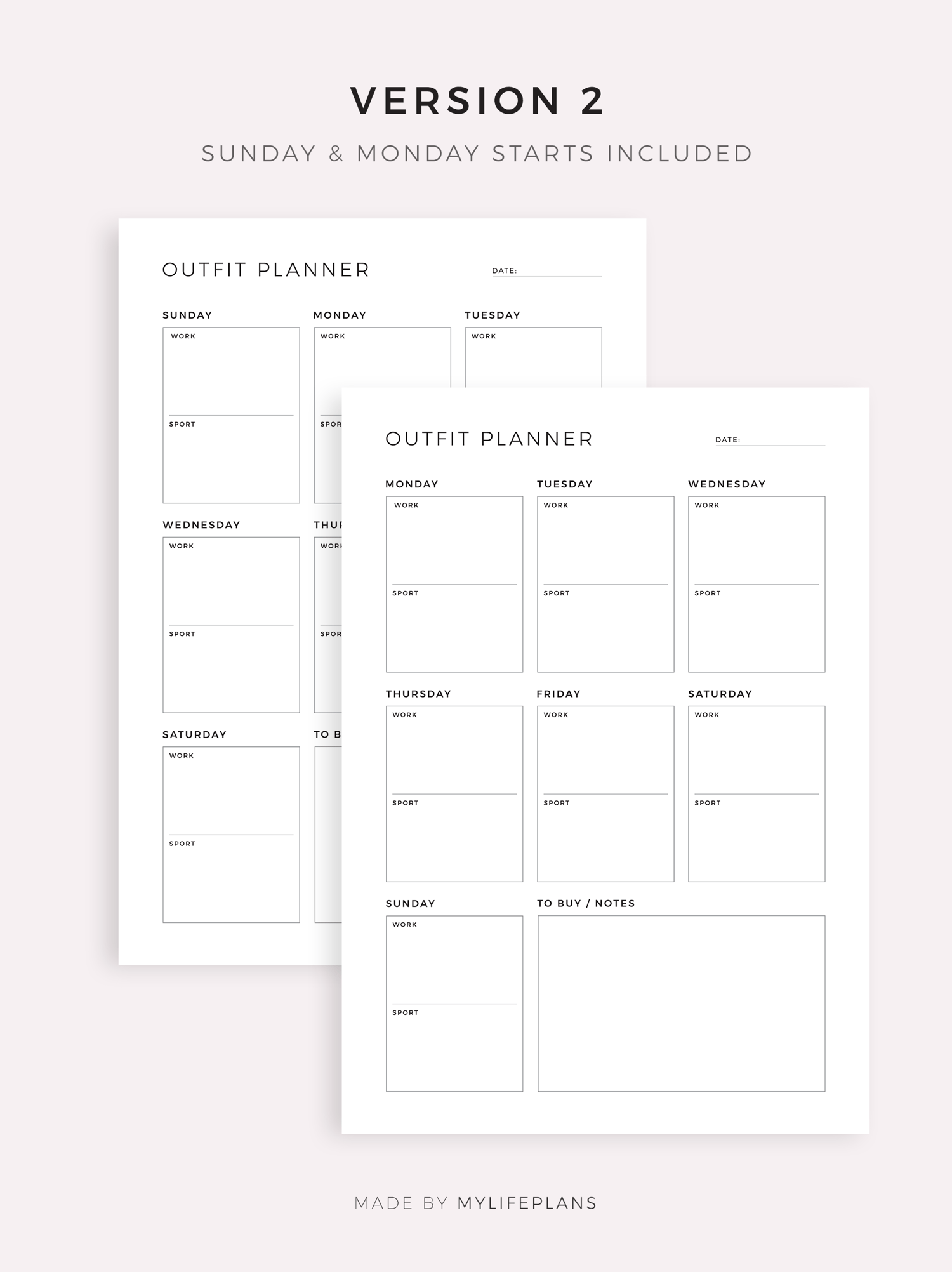 Weekly Outfit Planner for Work, Daily Activities, Special Events, Gym, Travel, ect..