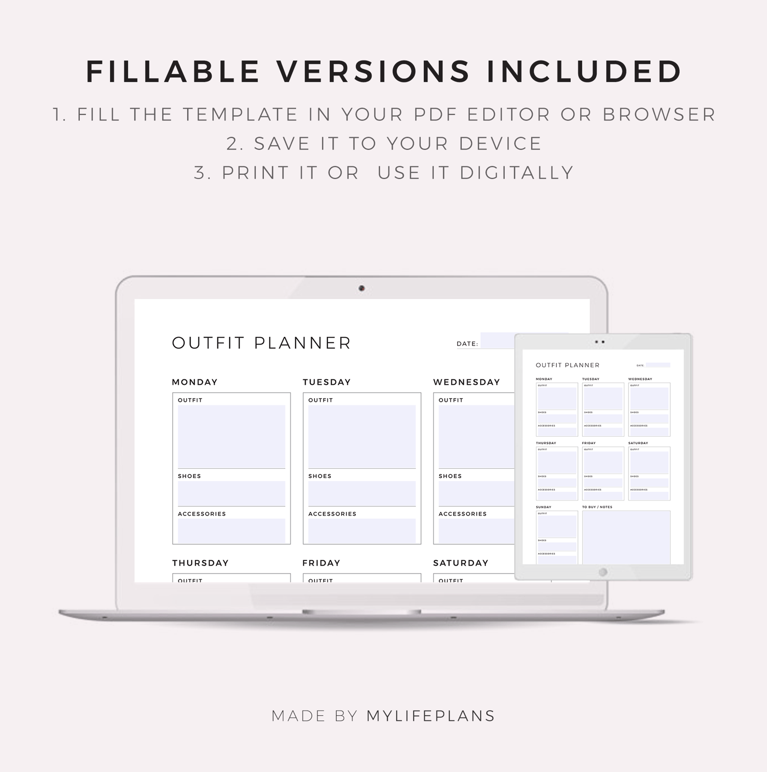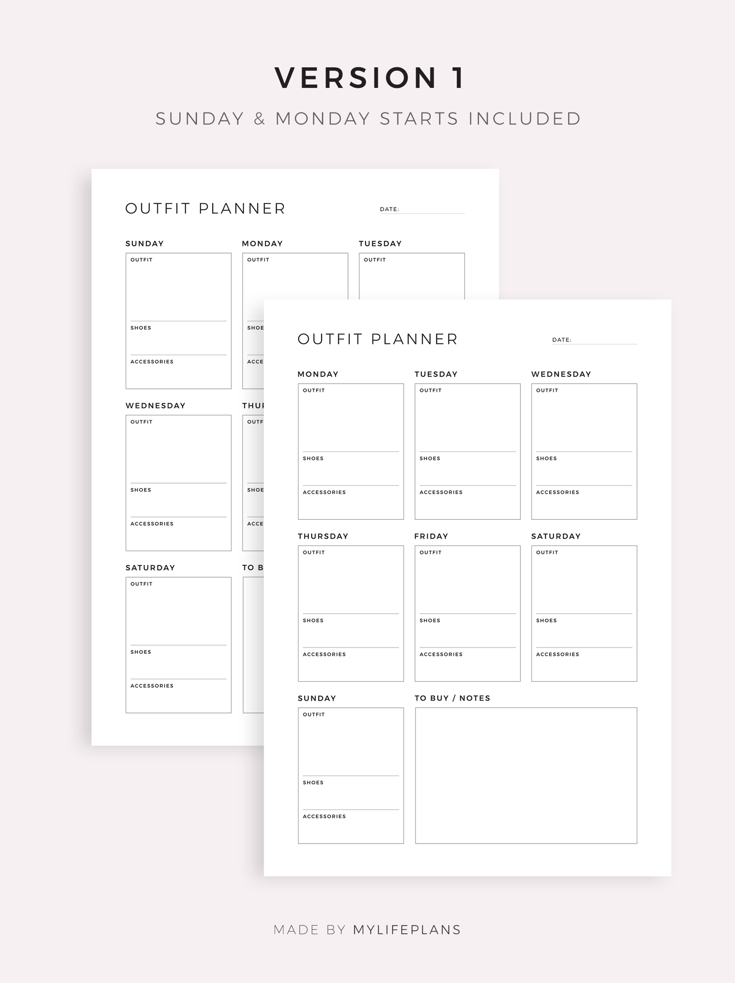 This is a printable weekly outfit planner — just download, print, and start using it right away.