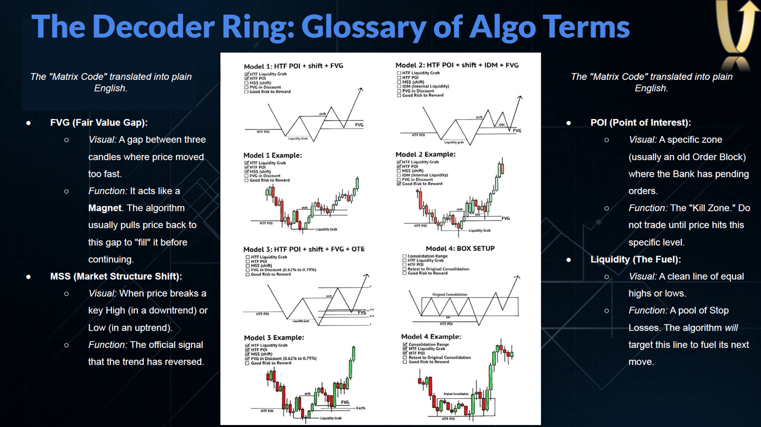 BONUS: Includes the "Glossary Decoder" breaking down the jargon (FVG, MSS, POI) into plain English.