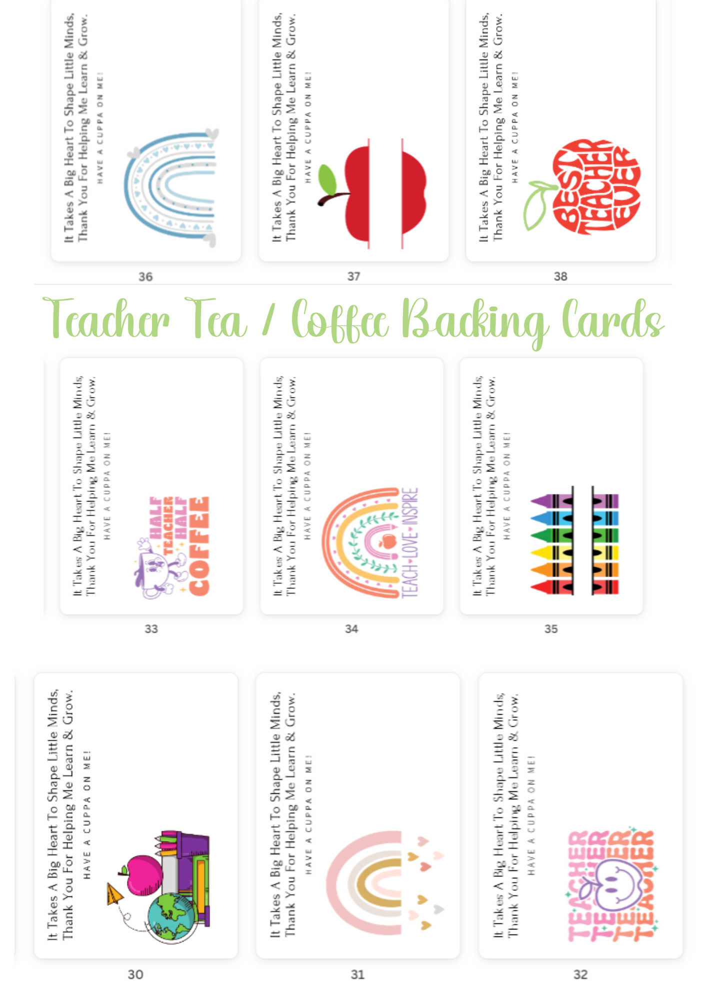 Teacher Tea / Coffee Backing Cards