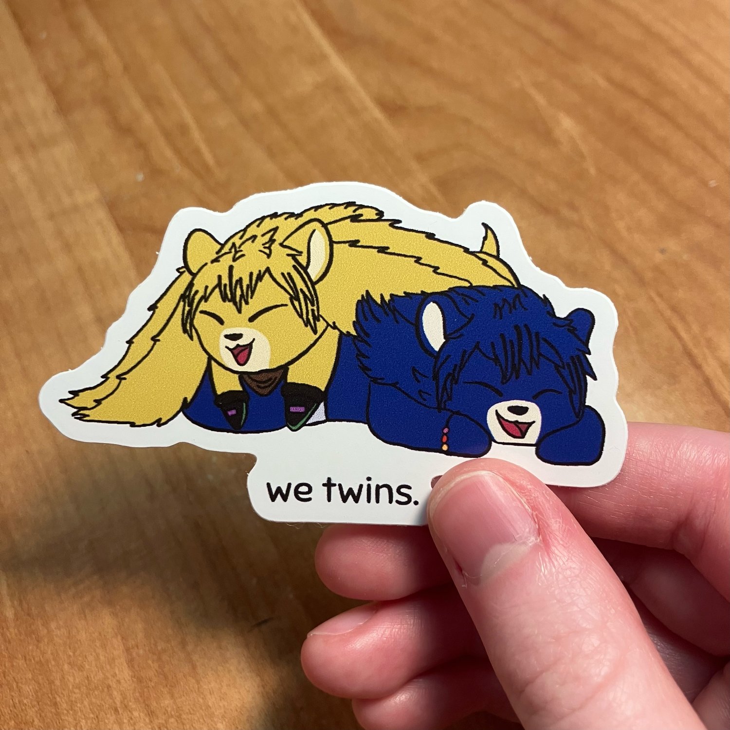 They're twins! Show off your love of Porter and Sapphire with this silly chibi sticker! 3" at longest side. Made of premium vinyl; waterproof/dishwasher safe, so you can slap it on anything!