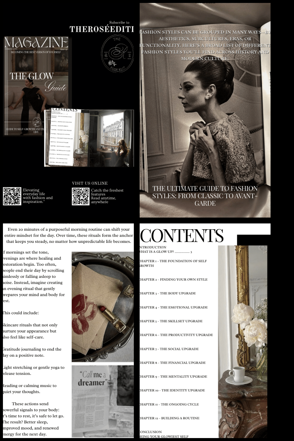 This isn’t just a makeover—it’s a complete transformation. A Glow Up Guide is your roadmap to becoming the best version of yourself, inside and out. From building unshakable self-confidence to discovering your personal style, upgrading your body and emotions, mastering productivity, and even reshaping your financial future, this guide covers every step of the journey.