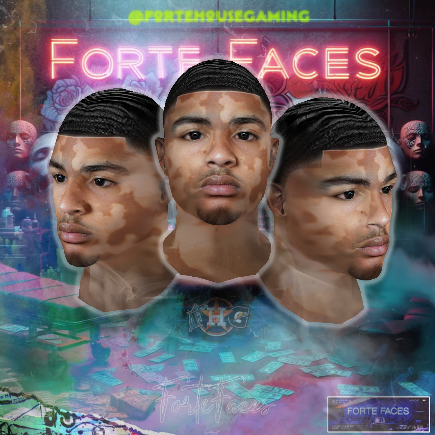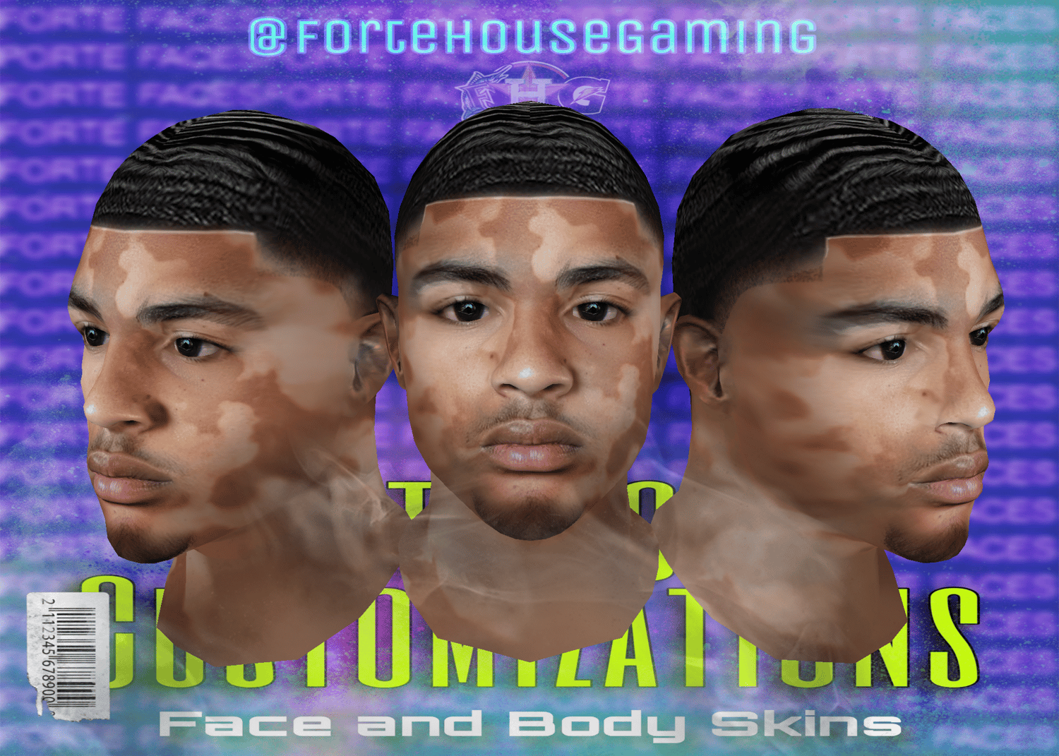 - Custom chin hair, tattoos, and lip detailing for added personality