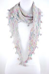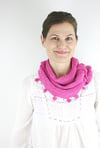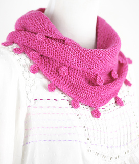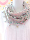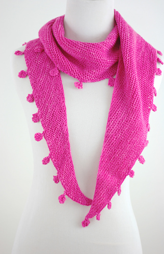 Cubetcha is a boomerang shaped shawlette that was designed in a solid and speckle, Miss Babs Yummy 2-Ply in Caph (bright pink) and La Bien Aimée Twist Sock in Aimée’s Sweater (the soft speckle.) Singles also work well for this as does any skein of fingering/sock yarn that you love.