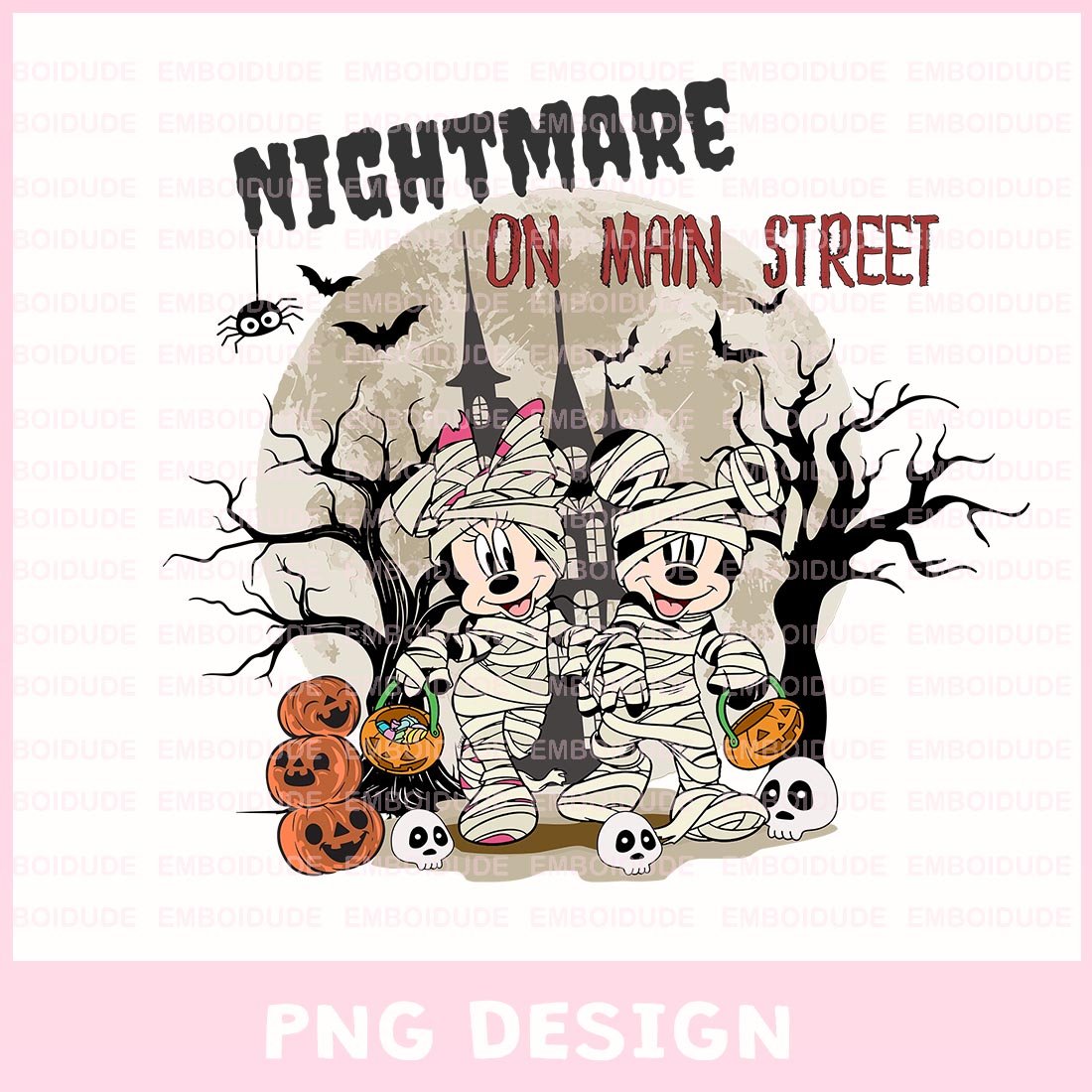 Nightmare On Main Street Mickey Minnie Mouse Png Designs, Disney Halloween Sublimation Png, Mummy Mouse Clip Art, Spooky Vibes Design, Digital Download