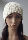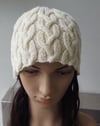 The plaited cable pattern in this beanie matches my “Natalie” lady’s plaited cable jacket pattern.