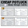 Cheap Potluck Ideas Recipe Cards Printable