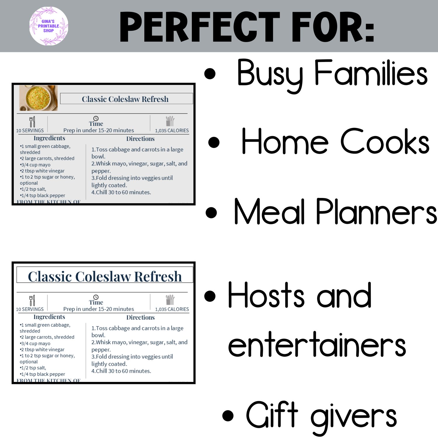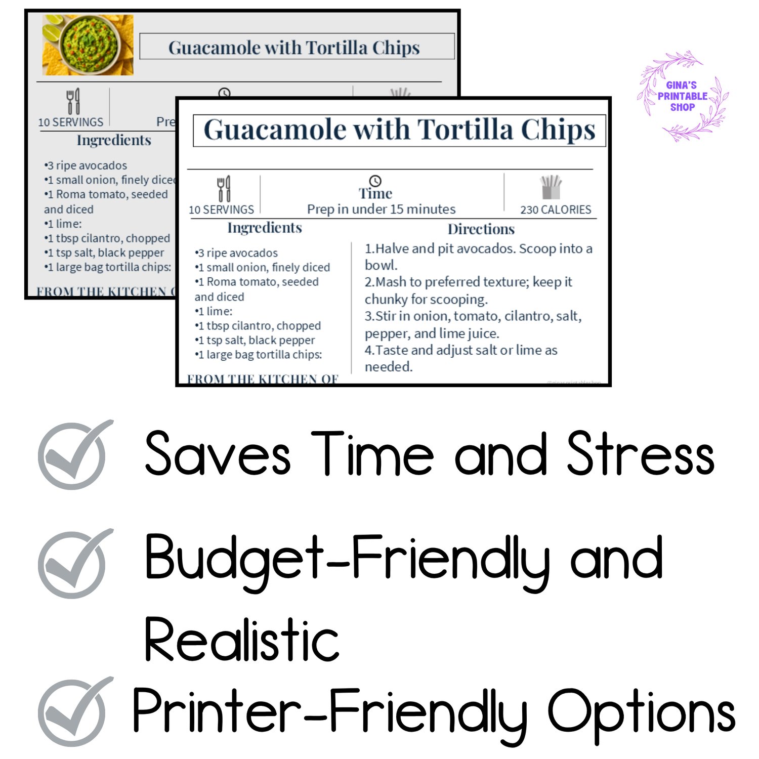 Two Versions Included: A beautiful color edition with light grey backgrounds and recipe images, and a black & white edition for simple, ink-friendly printing.