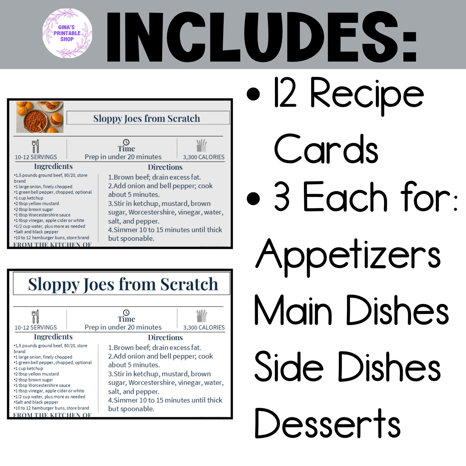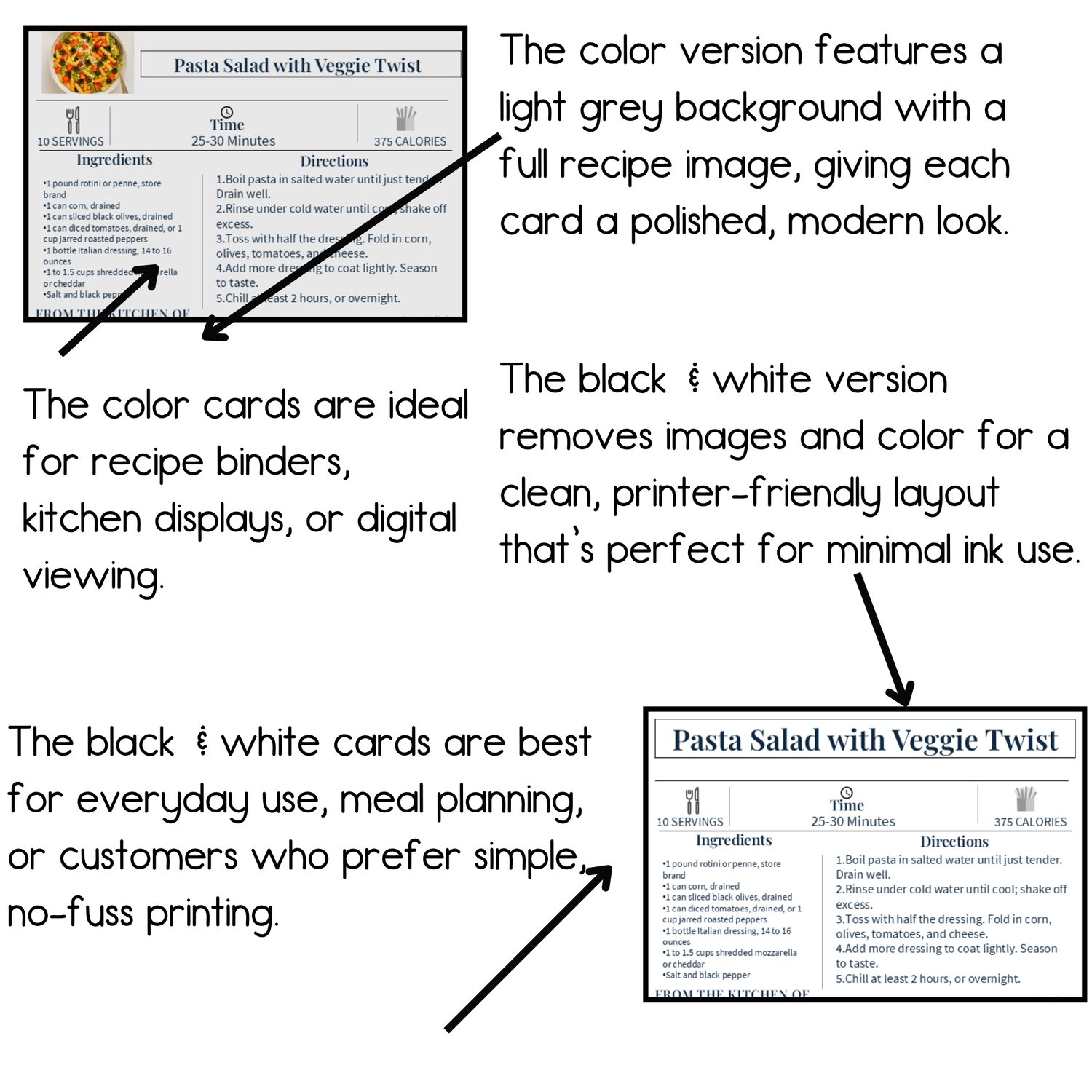 ❤️Printer-Friendly Options: Choose between full-color cards with recipe photos or simple black & white versions for easy printing.
