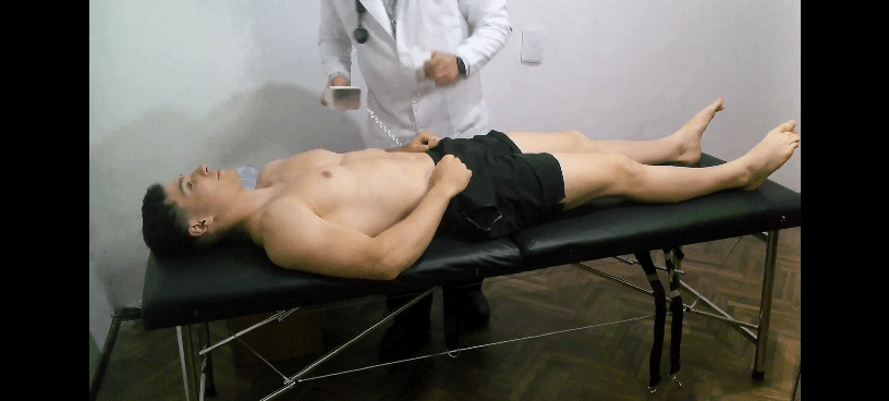 Alejandro is an enthusiastic sportsman willing to put his body to the test. First the doctor check his heart at rest and after some exercises. Then he endures some gutpunch. Finally after some