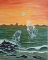 Keywords: Landscape, seascape art, nature, healing, healing art, soul healing, spiritual, spiritual art, spiritual work, divine energy, peace, calm, serenity, soulful art, divine work, divinity, spirituality, beauty, artistry, divine vessel, belle, fantasy, art by belle, ocean, waves, surrealism, fishes, symbols, meanings