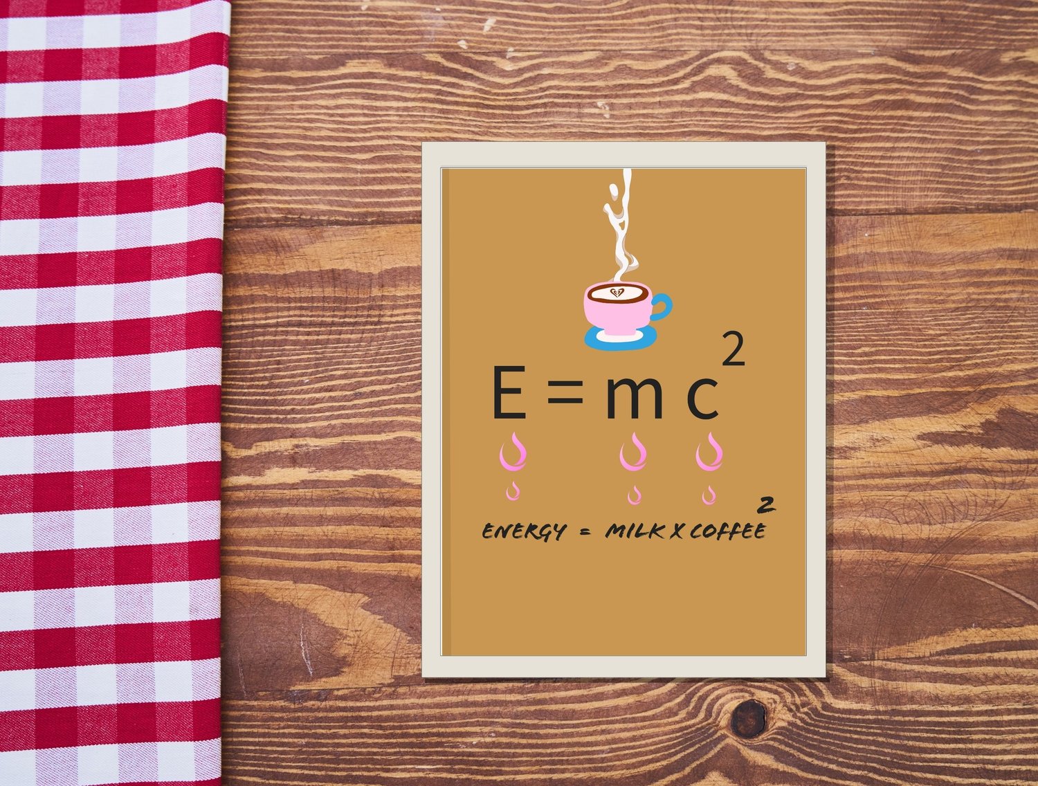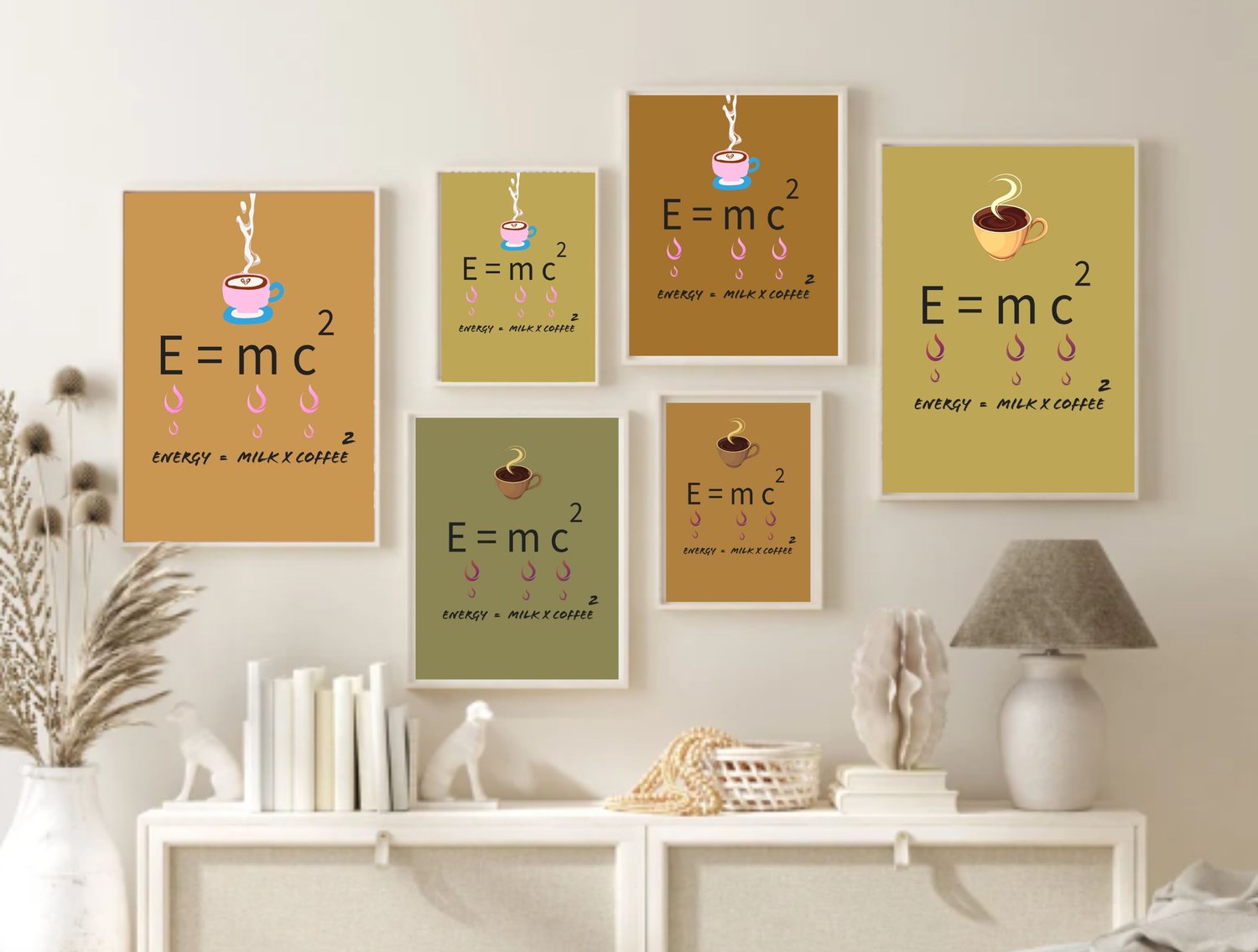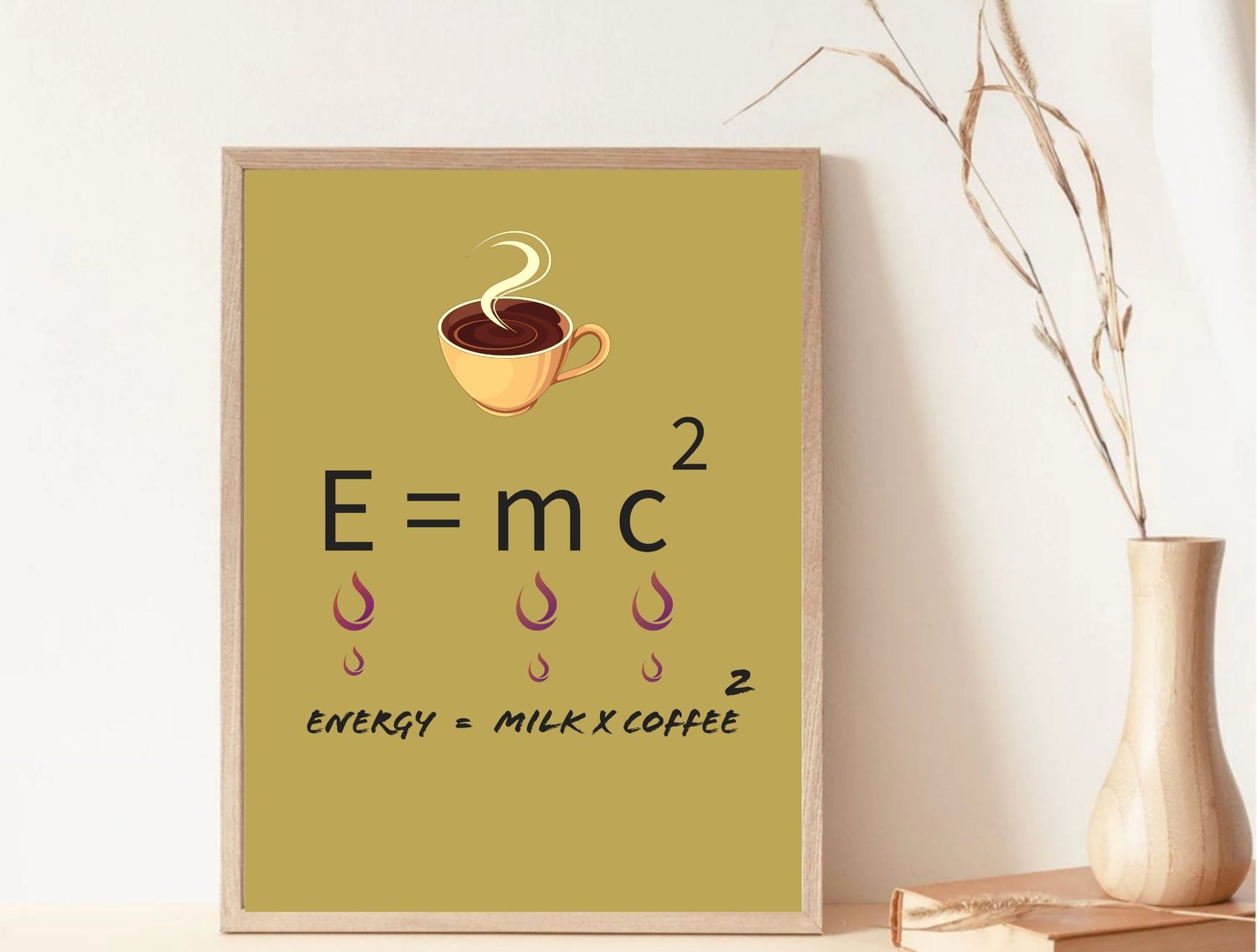 Love a cuppa? This is for a uniquely designed novelty trendy coffee digital printable art set of 6, featuring the equation of Energy = Milk & Coffee (E=MC2). A fun and attention grabbing art piece ideal for the kitchen, café of or dining room. Get all 6 variants for the price of 1.