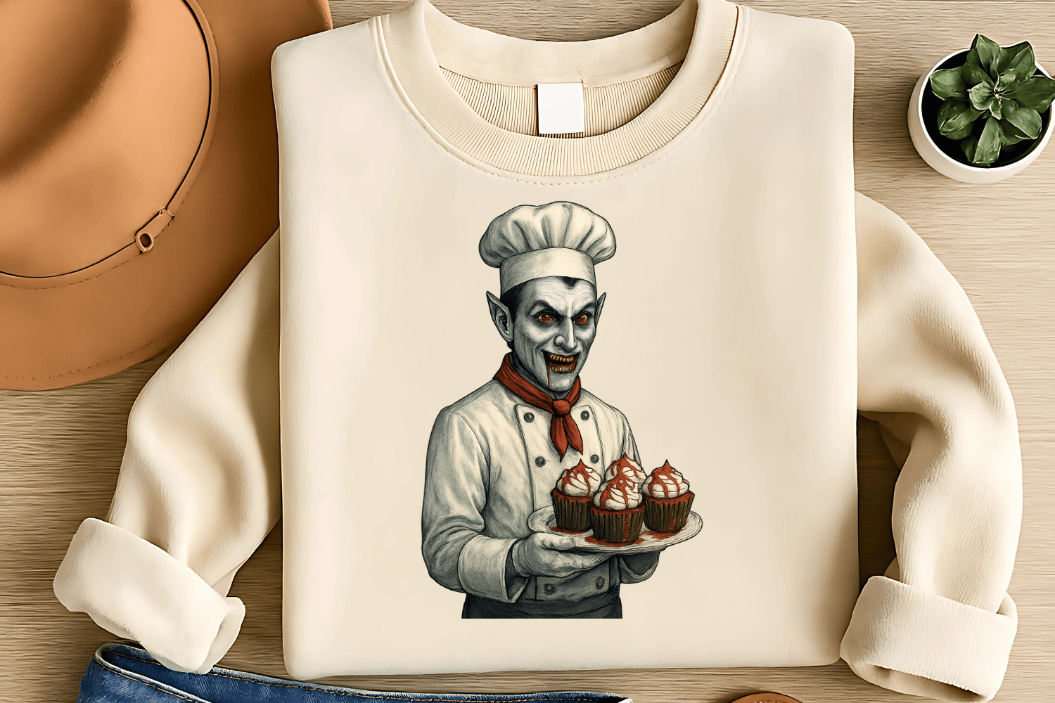 Vampire Chef Sublimation PNG – Funny Halloween Clipart for T-Shirts – Bloody Recipes & Sharp Teeth – 300 DPI Instant Digital Download