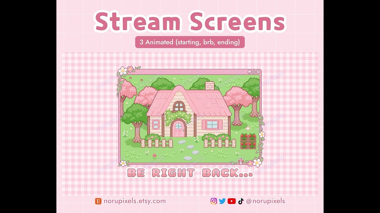 - 3 animated stream screens (starting, be right back, ending), each in .MP4 format (size 1920 x 1080px)