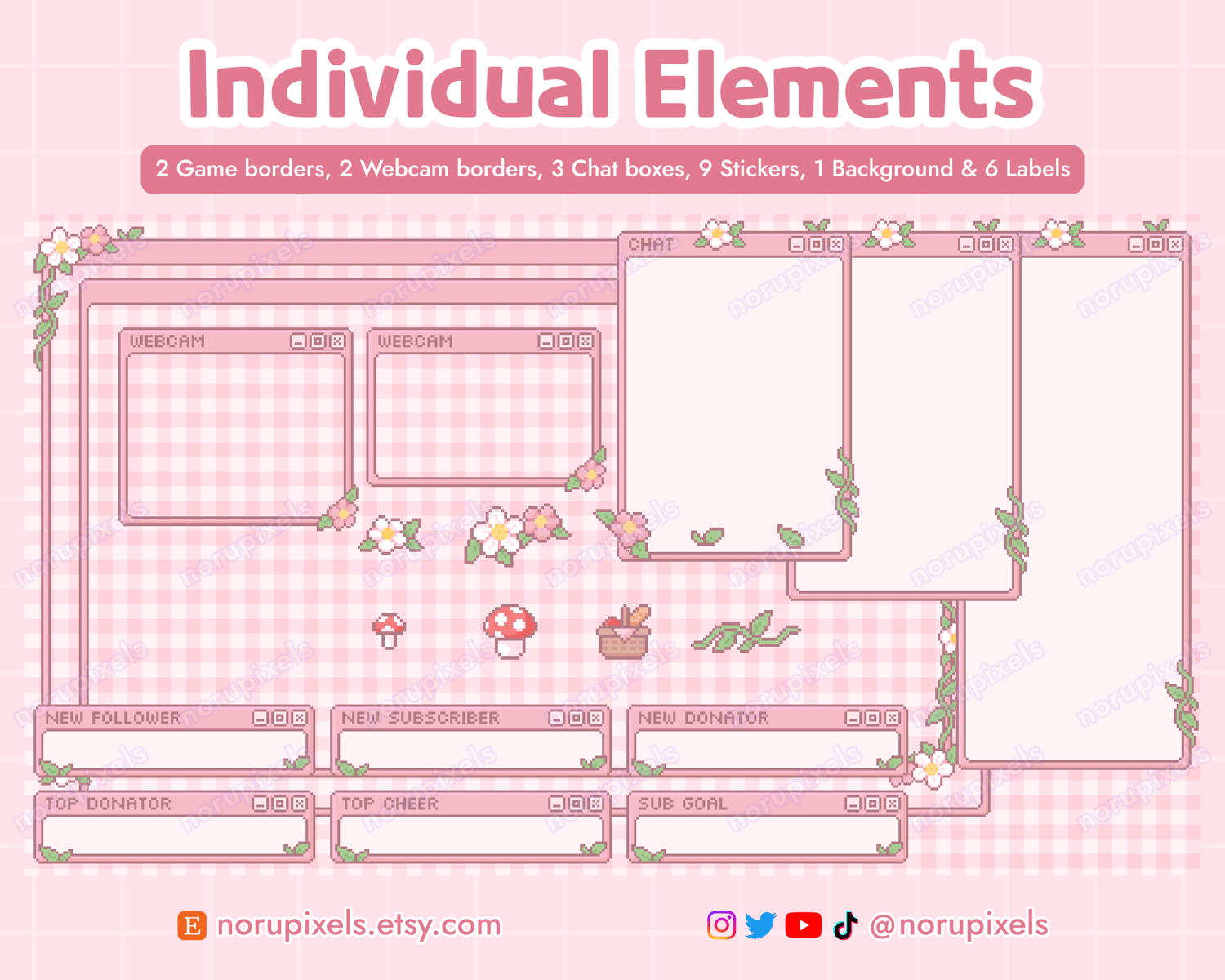 - Individual elements from overlay: 2 game borders, 2 webcam borders, 3 chat boxes, 9 stickers, 1 background & 6 labels (.PNG format & transparent backgrounds)