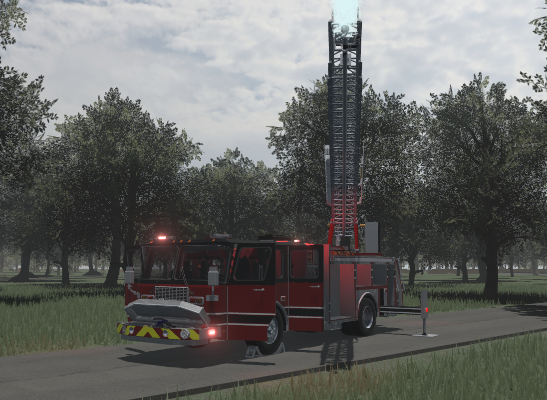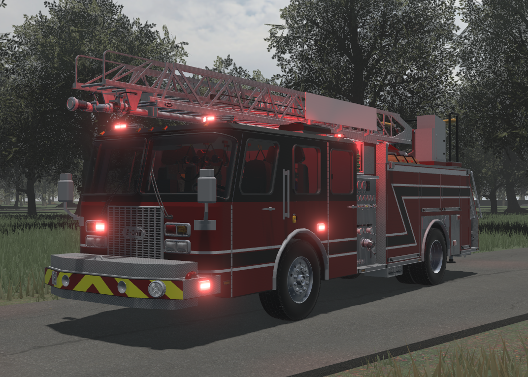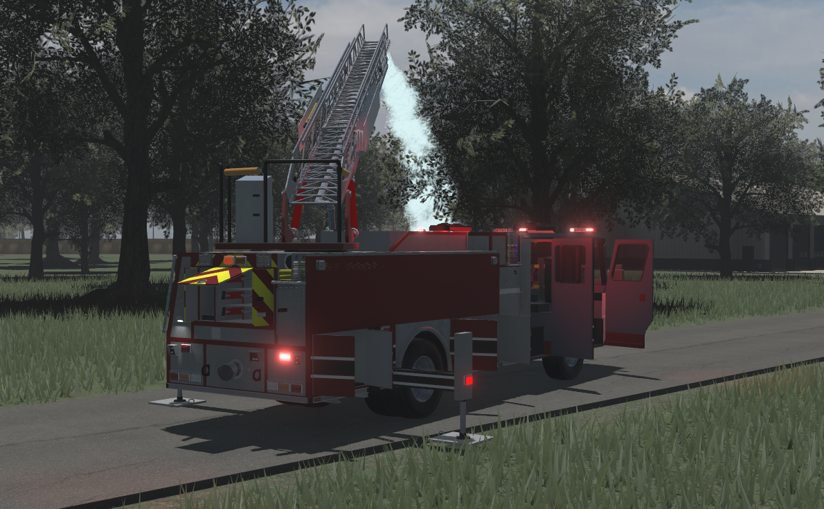 A-chassis, Working ELS, all compartments open up. Q siren (V), Pump makes sounds (Click governor), Working Deluge Gun