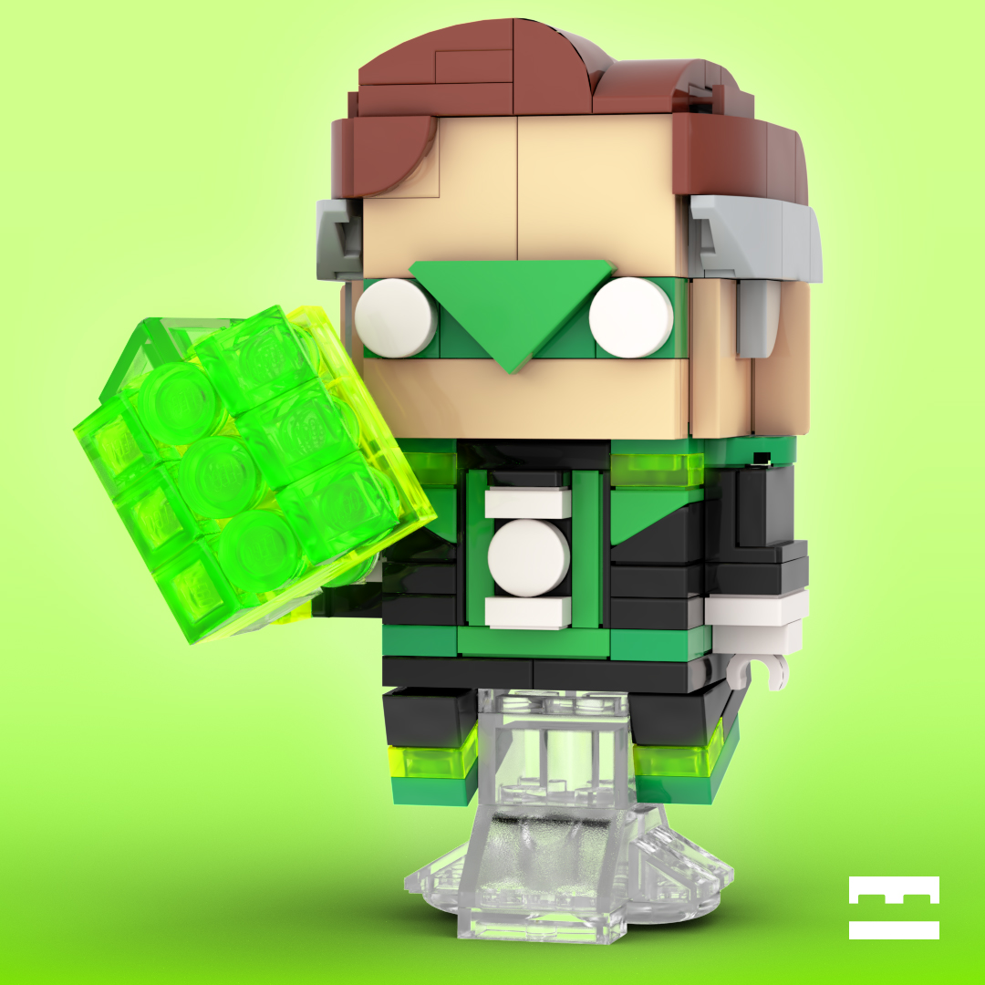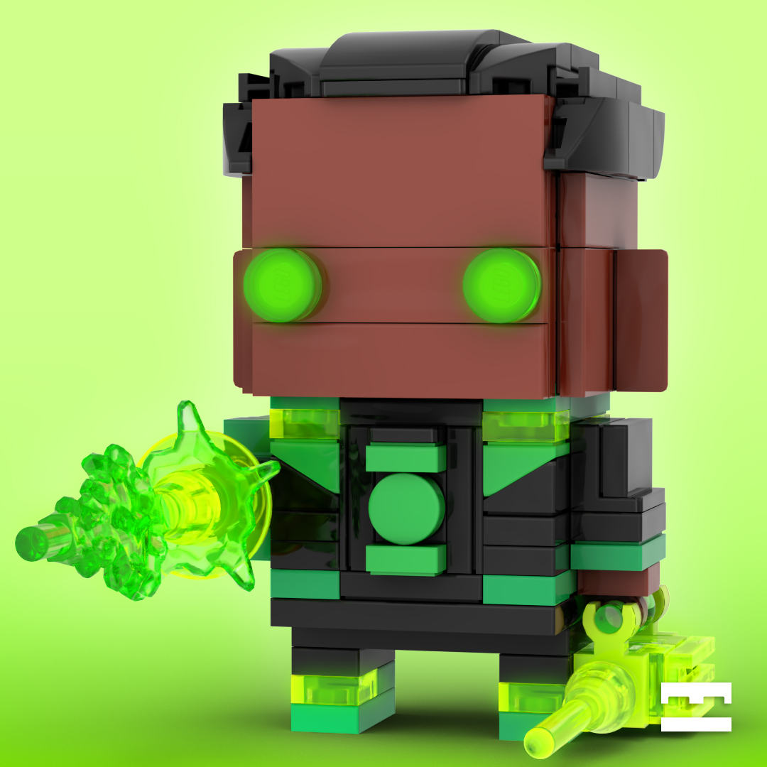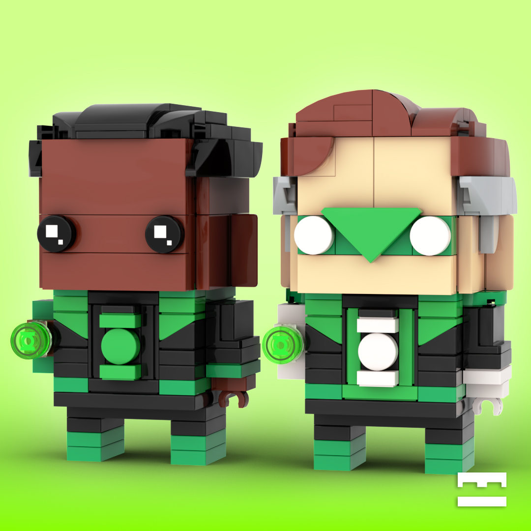 Custom LEGO brickheadz of Hal Jordan/Green Lantern and John Stewart/Green Lantern, in an original design based on the character from DC Comics.