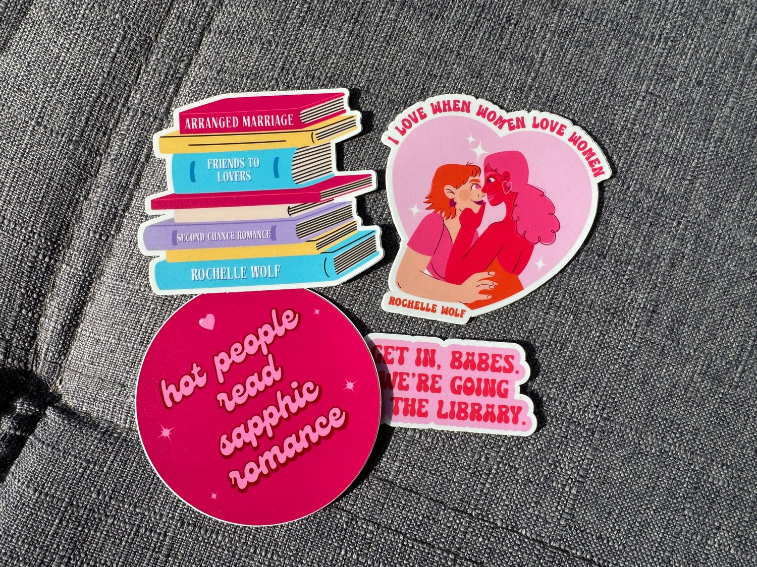 support the author in their moving sale by buying a sticker pack! Each sticker bundle comes with 3-4 high quality sapphic book themed stickers. There are many sticker options, no bundle is exactly the same like a blind box!