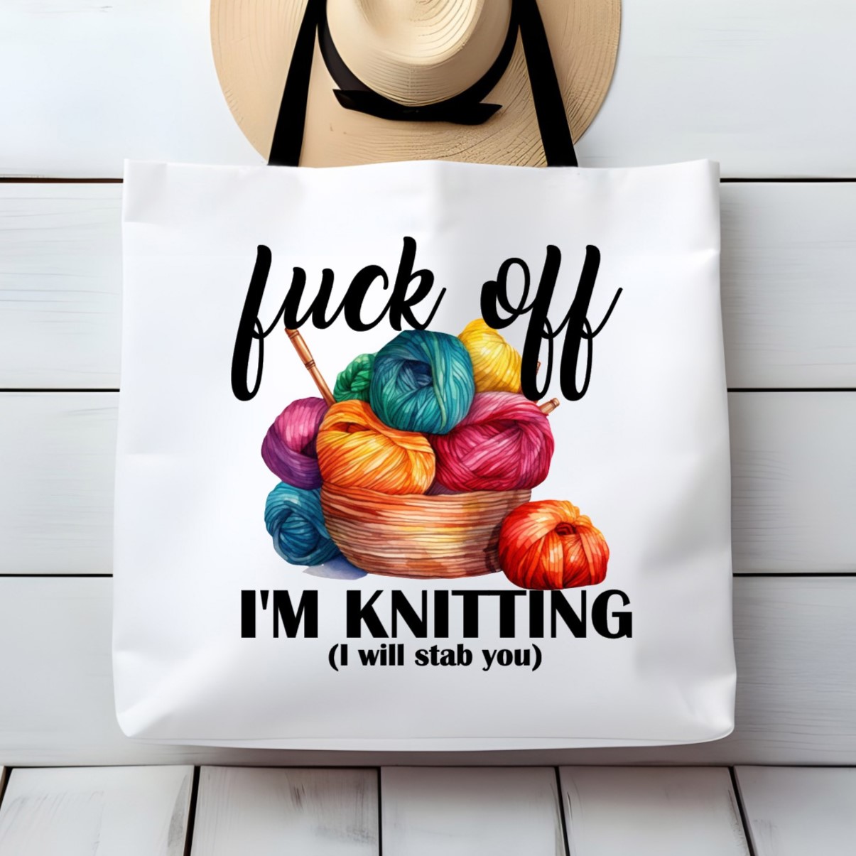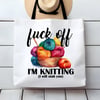 Fuck Off I'm Knitting Sarcastic Funny Large Tote Bag