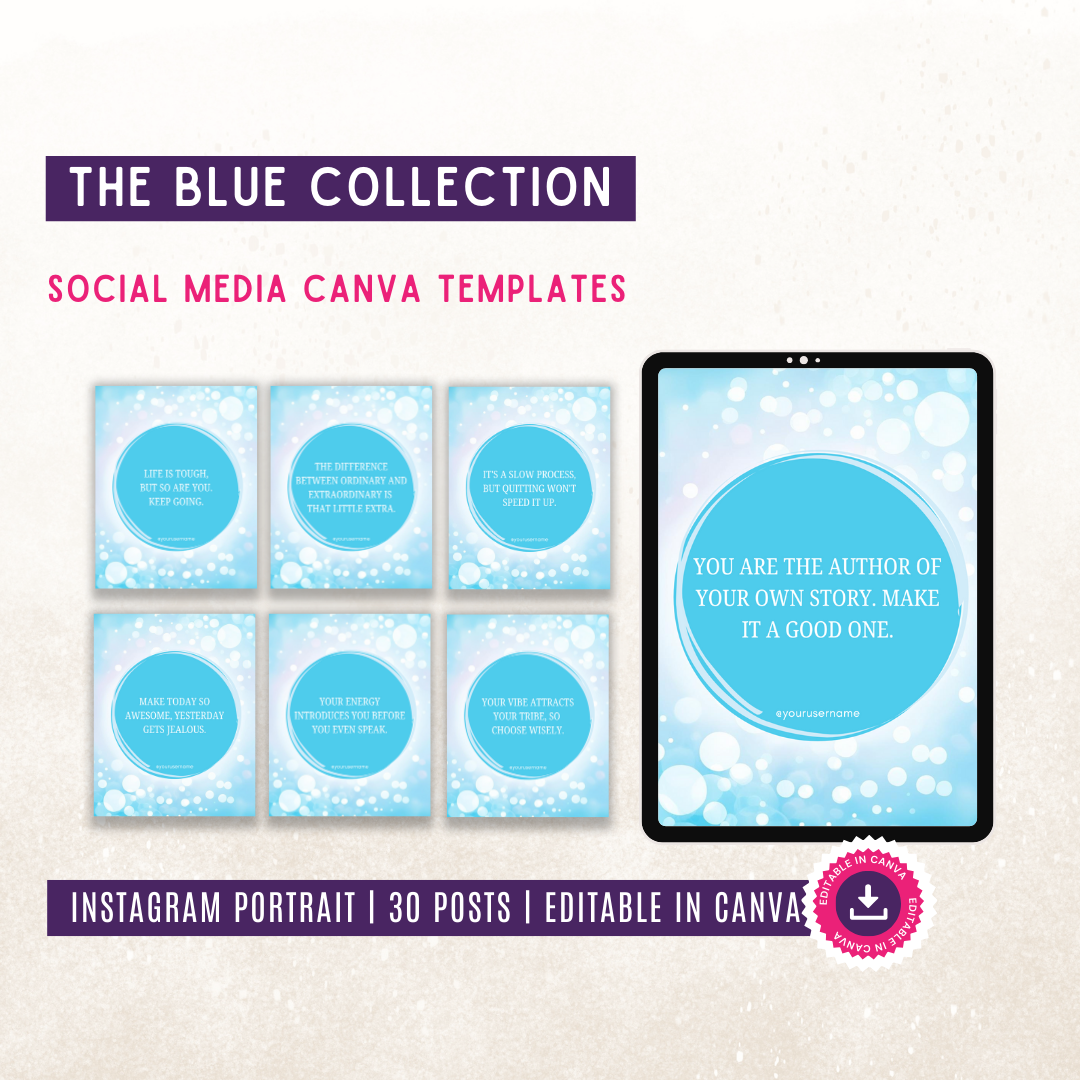 Motivational Templates – 30 Canva Posts in Blue Tones