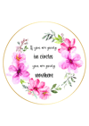 Beautiful pink and lilac watercolor flower frame with inspirational/motivational text: “If you are going in circles you are going nowhere”. The flower frame is open on the top.