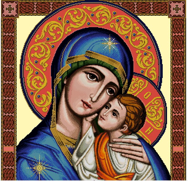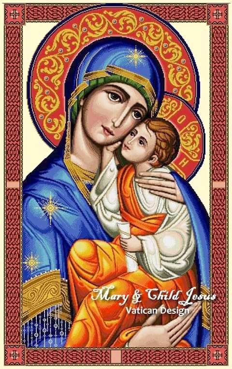 Religious Icon Mama Mary and Child Jesus - Vatican Design Cross Stitch PDF Downloadable Pattern