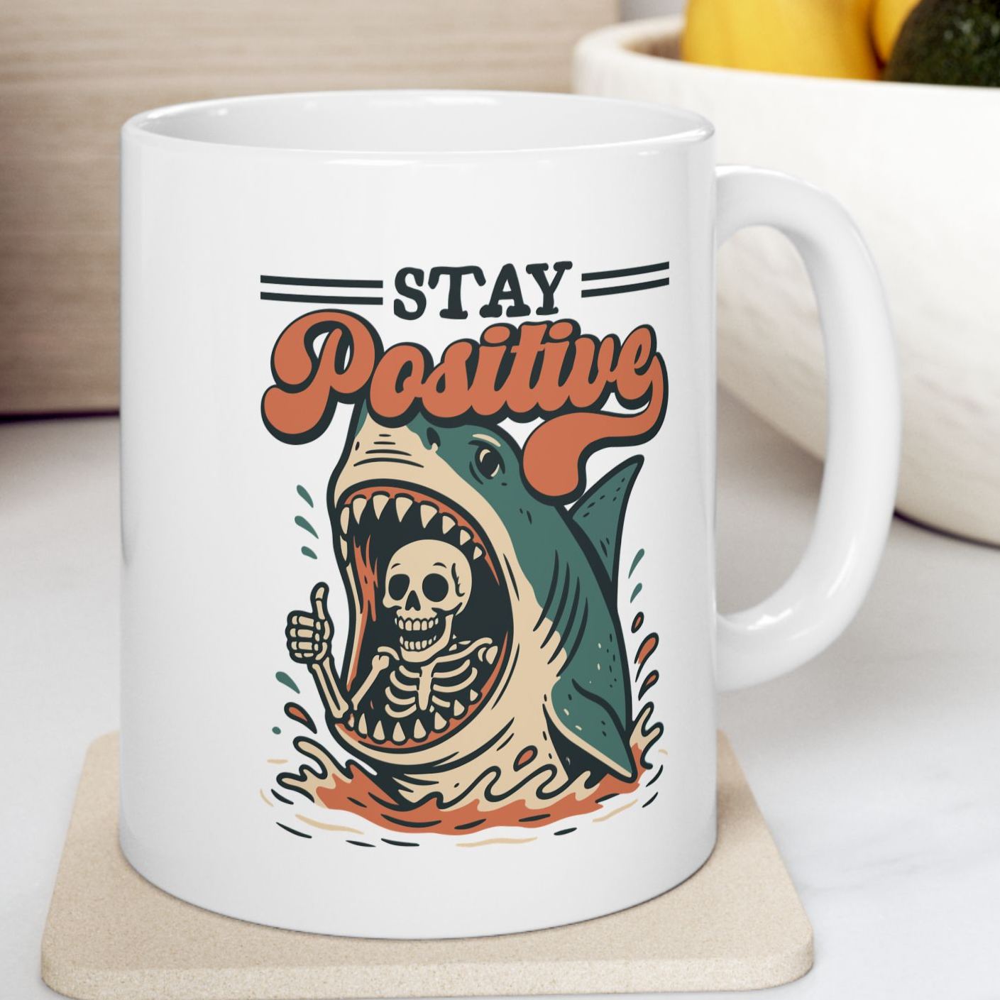 Stay Positive Skeleton In Shark Funny Sarcastic Coffee Mug