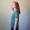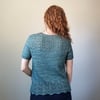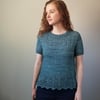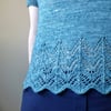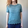 Flapper is knit in the round from the bottom hem to the underarm. It begins with a charted lace pattern to create a scalloped hem, then transitions into stocking stitch for the body. At the underarm, stitches are cast off, and the front and back are worked flat and separately up to the shoulders. Lace is incorporated into the upper yoke. After seaming the shoulders, the sleeves are picked up from the armhole edge and worked down to the cuff using short rows to shape the sleeve cap. The collar is picked up last and worked in the round.