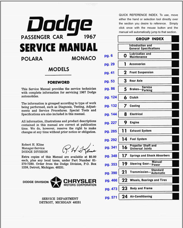 1967 Dodge Polara-Monaco Service Manual