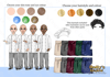 three different skin tones, three eye colours and 7 hair colours