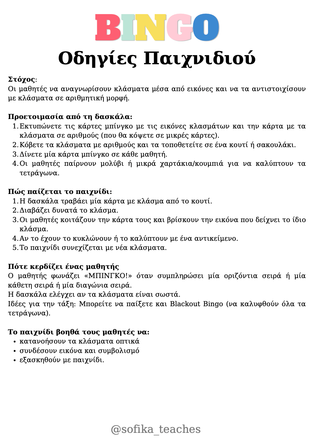 - Εκτύπωσε τις κάρτες Bingo και τις κάρτες κλασμάτων.